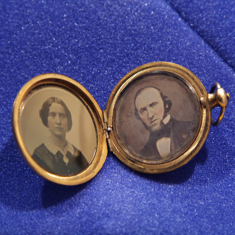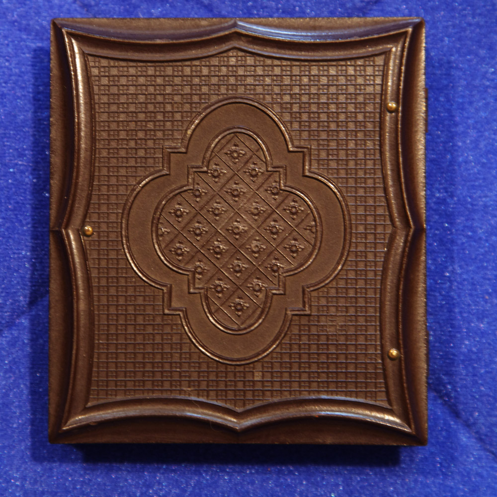 I was trying to figure out why the man in this locket would have been a daguerreotype, but the woman a tintype. Were they husband and wife, it would make sense for both images to be the same type, as they would have been taken at the same time. But if it were father and daughter, it would make sense for the photos to have been taken at two different times – the daughter would be carrying around a memento (probably a memento morii) of her father. And the ship sailing into harbor on the front cover perhaps suggests why – the girl may have been the daughter of a sailor or ships captain/officer, who perished at sea… or not… he may have died at home of old age, but that wouldn’t make as much sense or as neat a story.