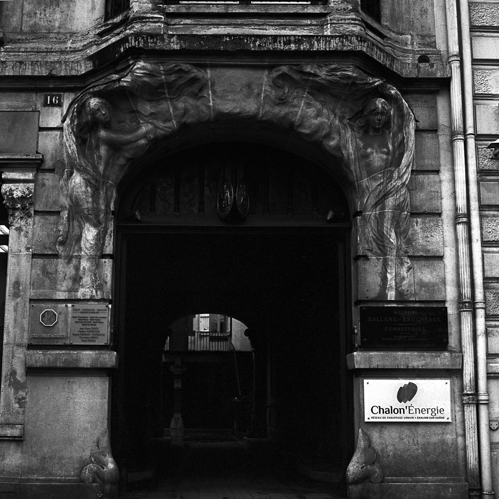 The old advertisement still visible on the wall of the building is on a street leading away from the old (2nd-16th Century) core of the town. Just around the corner is a McDonalds, with view camera designs etched in the windows. Even if the rest of the world doesn’t know it, the Chalonnais certainly remember what portion of their heritage is related to photography.