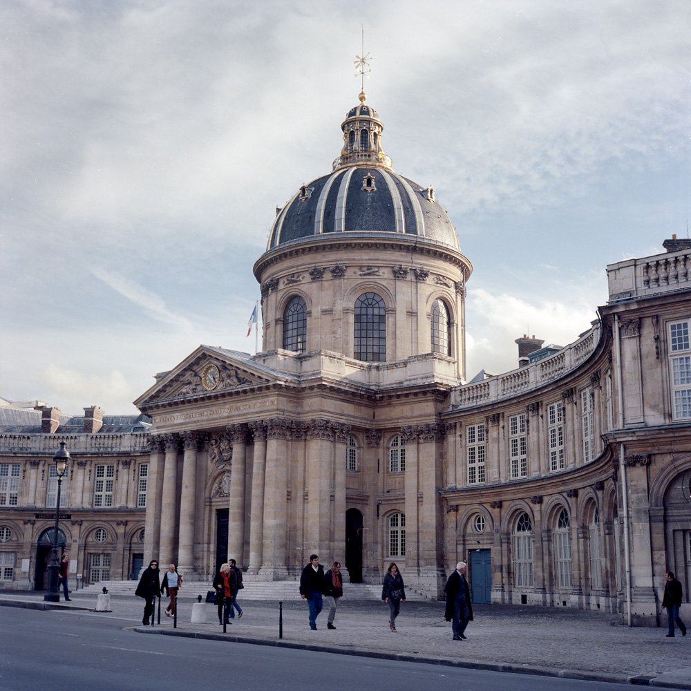 Here are four loose assorted images. I forgot I had the Eiffel Tower shot when I was posting the Eiffel Tower images because it was on a different roll. The Musee D’Orsay shots don’t have enough of a group to make a complete post of their own because technically you’re not supposed to take photos inside the museum in the first place, and it’s very crowded so it’s hard to take good photos of the building without lots of out-of-focus heads in the lower foreground. The Academie Francais building was a one-off, taken on my walk back to the apartment from the Musee D’Orsay. It was late enough in the day, and my feet were tired enough, that I couldn’t be bothered to try and see if the Academie was open and if they had any exhibits to visit. But it was lovely light and the building needed photographing.