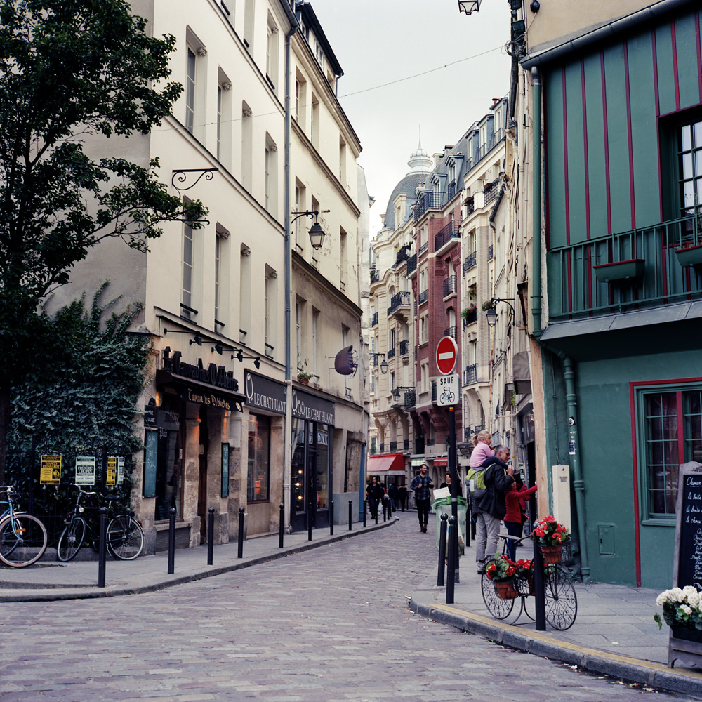 The Rue Galande is an alley that runs behind the block where Shakespeare & Co. bookstore is located. It is one of the old medieval streets that survived Haussmannization – the street itself bends and winds, and the building facades seem to mimic the street, teetering back and forth at unsteady angles.