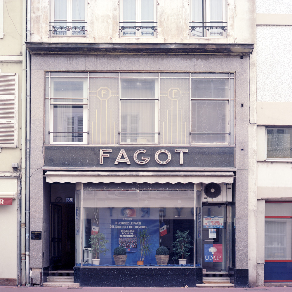 I couldn’t help but photograph this storefront for the combination of the beautiful if faded 1940s Art Deco facade and the psychologically jarring name. Fagot (pronounced Fah-GO) is a family name, not a slur aimed at someones sexual orientation. Today, instead of the original business that built the building, it is occupied by the offices of a political party.