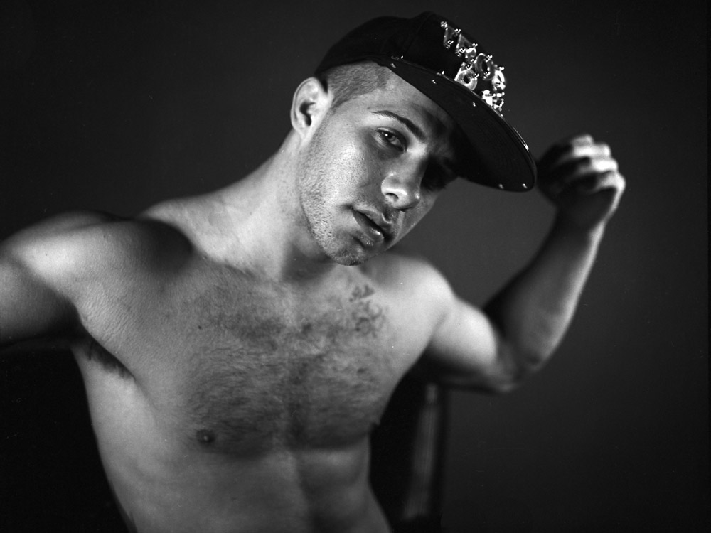 Kevin wanted to do some sexy, gay-affirmative images, and he had this hat that says “Trophy Boy”. While I don’t know quite how I feel about the “Trophy Boy” message, the image is certainly attention-getting.