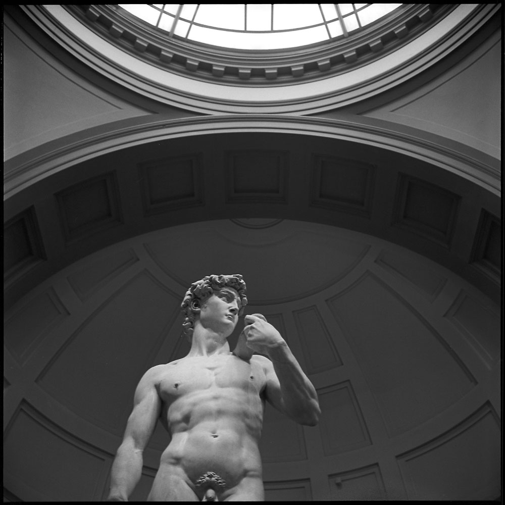 Back to the David – I had seen the copy that was made in the 19th century and placed in front of the Signoria on my previous visit, and I thought it was a good enough copy that I didn’t need to see the original. Having been now to see the original, I can say I was totally wrong. The public copy is an excellent copy, but it’s still just a high-end Xerox of Michelangelo’s. I tried with this composition to photograph it in a slightly less cliche fashion by including the architecture of the room.
