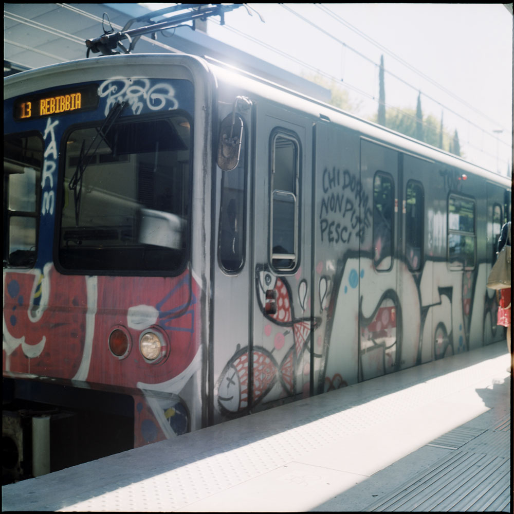 The Roman subway trains are covered in graffiti in a way reminiscent of the New York City subway trains in the 1970s and 80s. I assume the yards where the trains are parked at night are insecure – that would be the only explanation I can think of for the sheer amount of graffiti.
