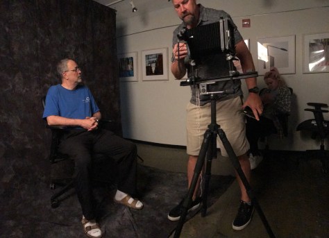 Having a little fun with the panoramic function on my iPhone in class today. Took this picture of two of my Large Format students doing studio portraits with a 4×5. I dug into the vaults and found some of my remaining stash of Polaroid Type 55 and let the students burn a couple sheets. I was more than pleasantly surprised with how well it worked- my Type 55 has to be a decade out of date by now, but the pods still processed nicely. I’d post some results but my students ran off with the negatives before I could copy any of them.