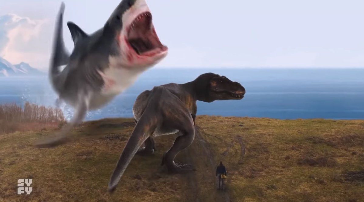 Bad Photoshop- sharks, T-rex, and man…