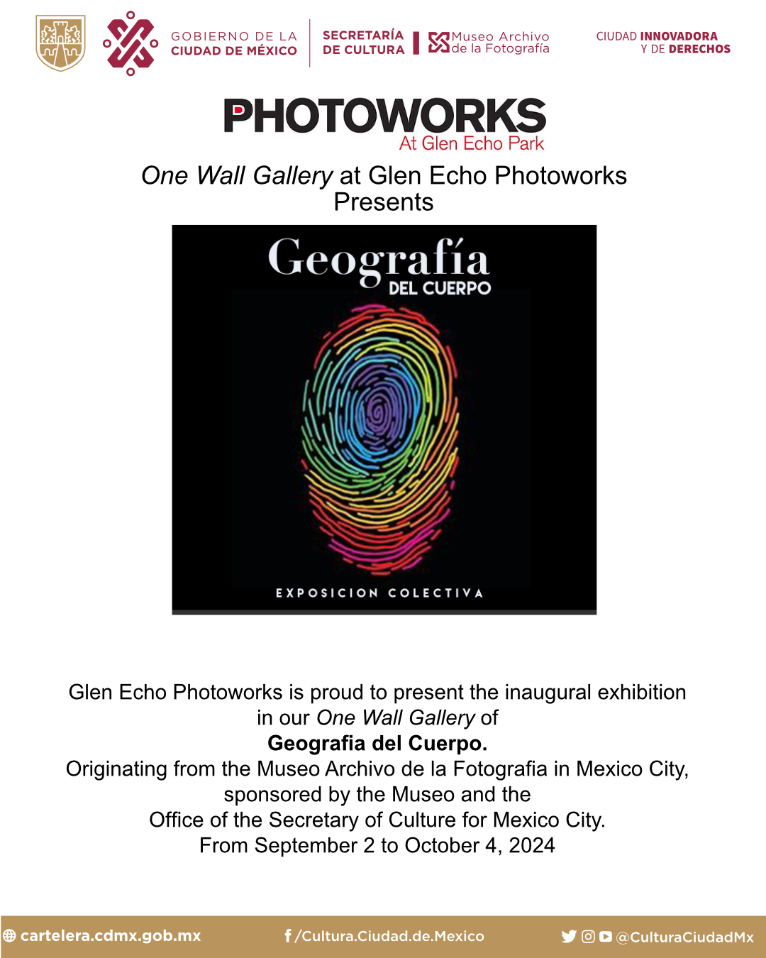 In conjunction with the Secretaria de Cultura del Ciudad de México, the Museo Archivo de la Fotografia, and Glen Echo Photoworks, I have brought a condensed version of Geografia del Cuerpo to inaugurate the One Wall Gallery at Glen Echo Photoworks. One Wall Gallery is a pop-up gallery space by the front door, designed to provide flexible exhibitions of shorter duration and bring life to an otherwise under-utilized space.