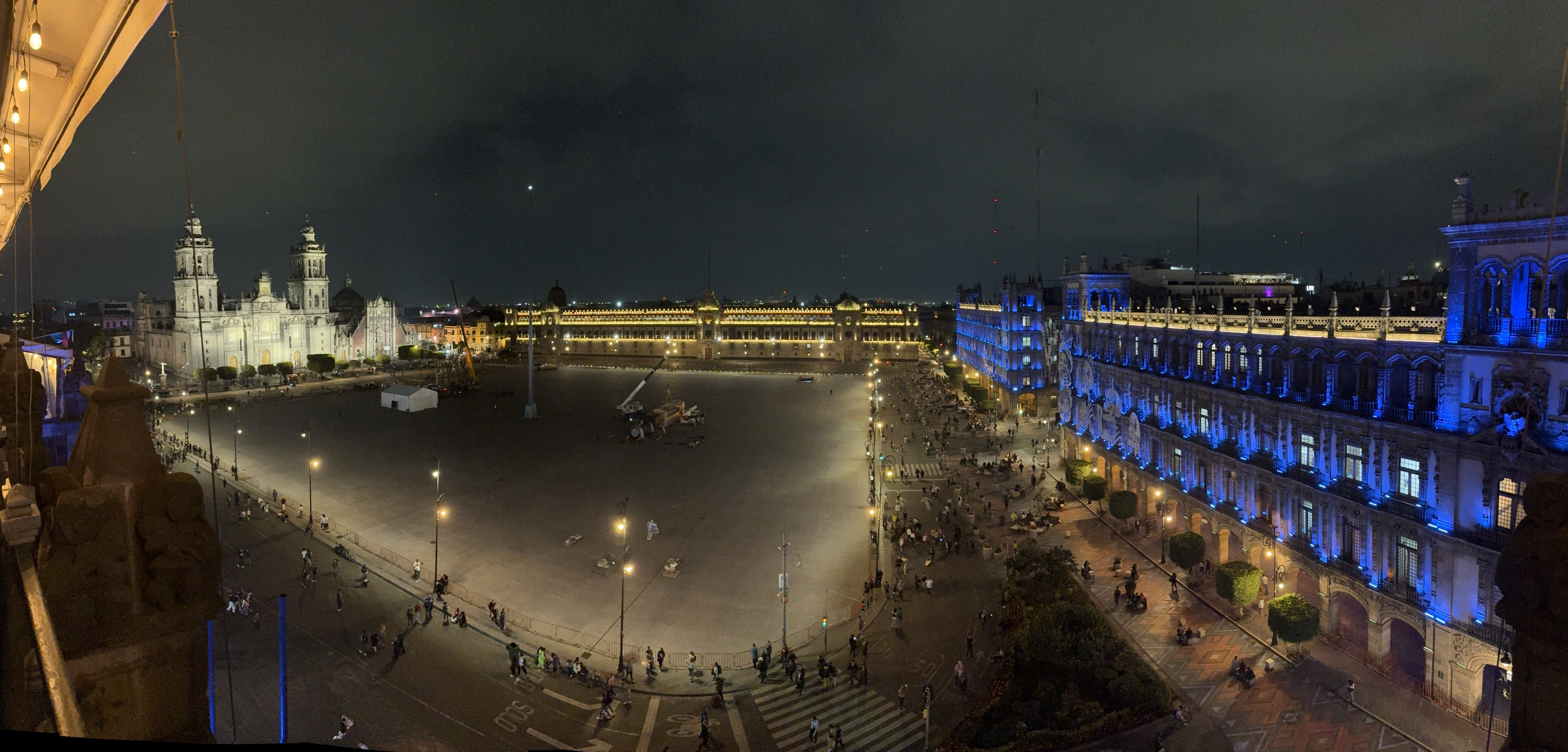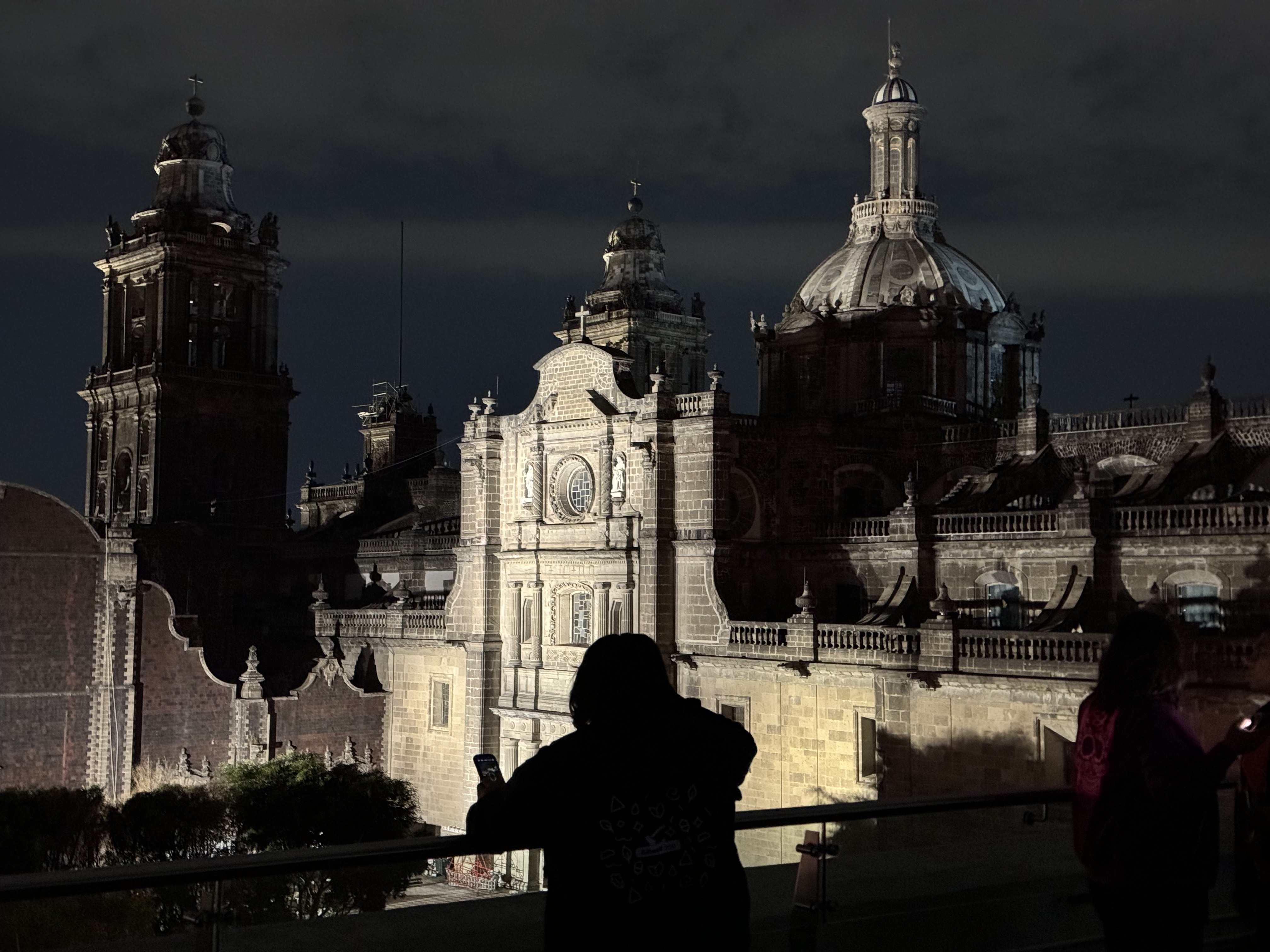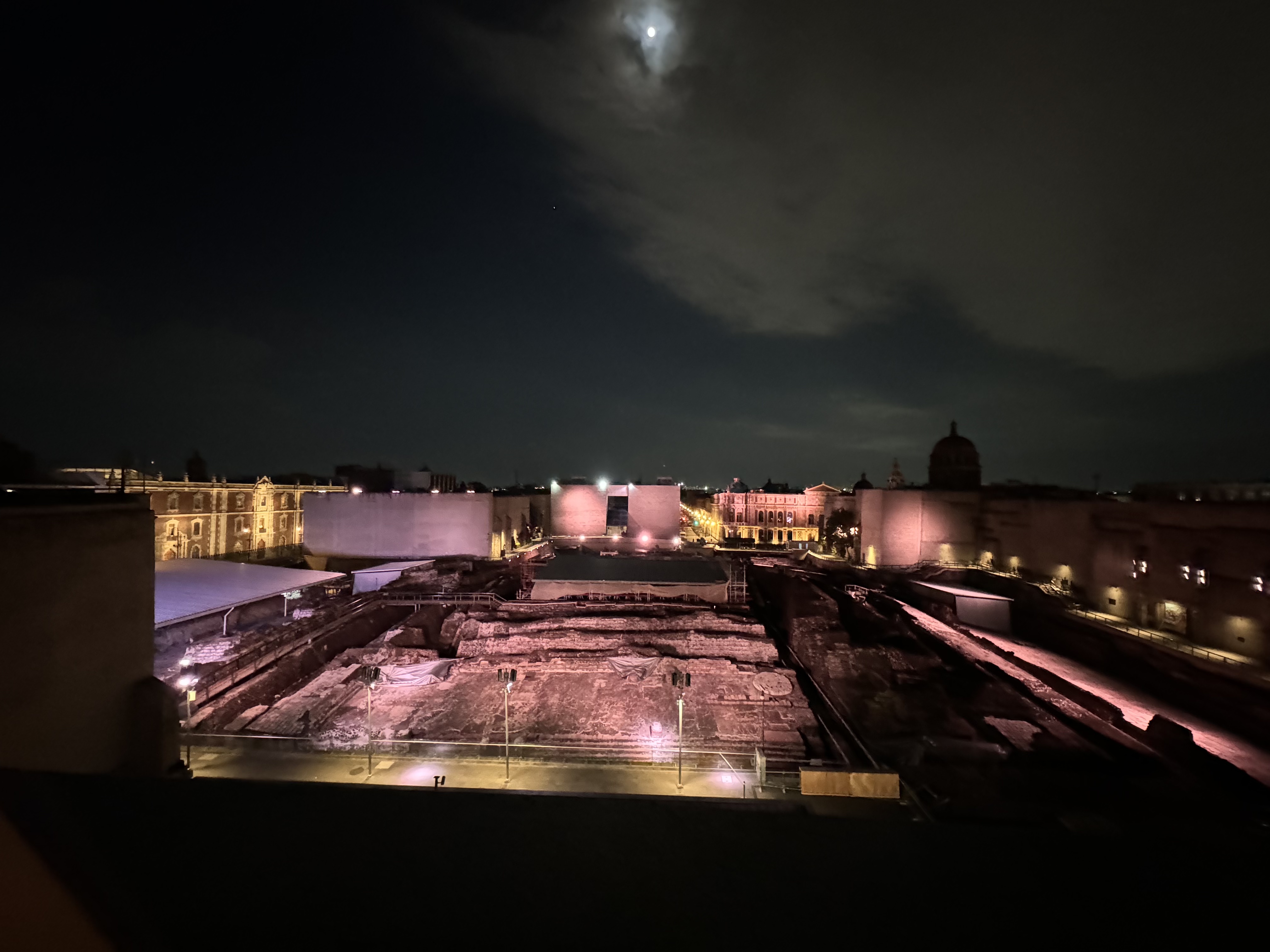 Our translatorMark and France Scully Osterman presentingMark and France viewing the cathedral at night from the museum rooftopView of the cathedral View of the Templo Mayor with the moon overhead