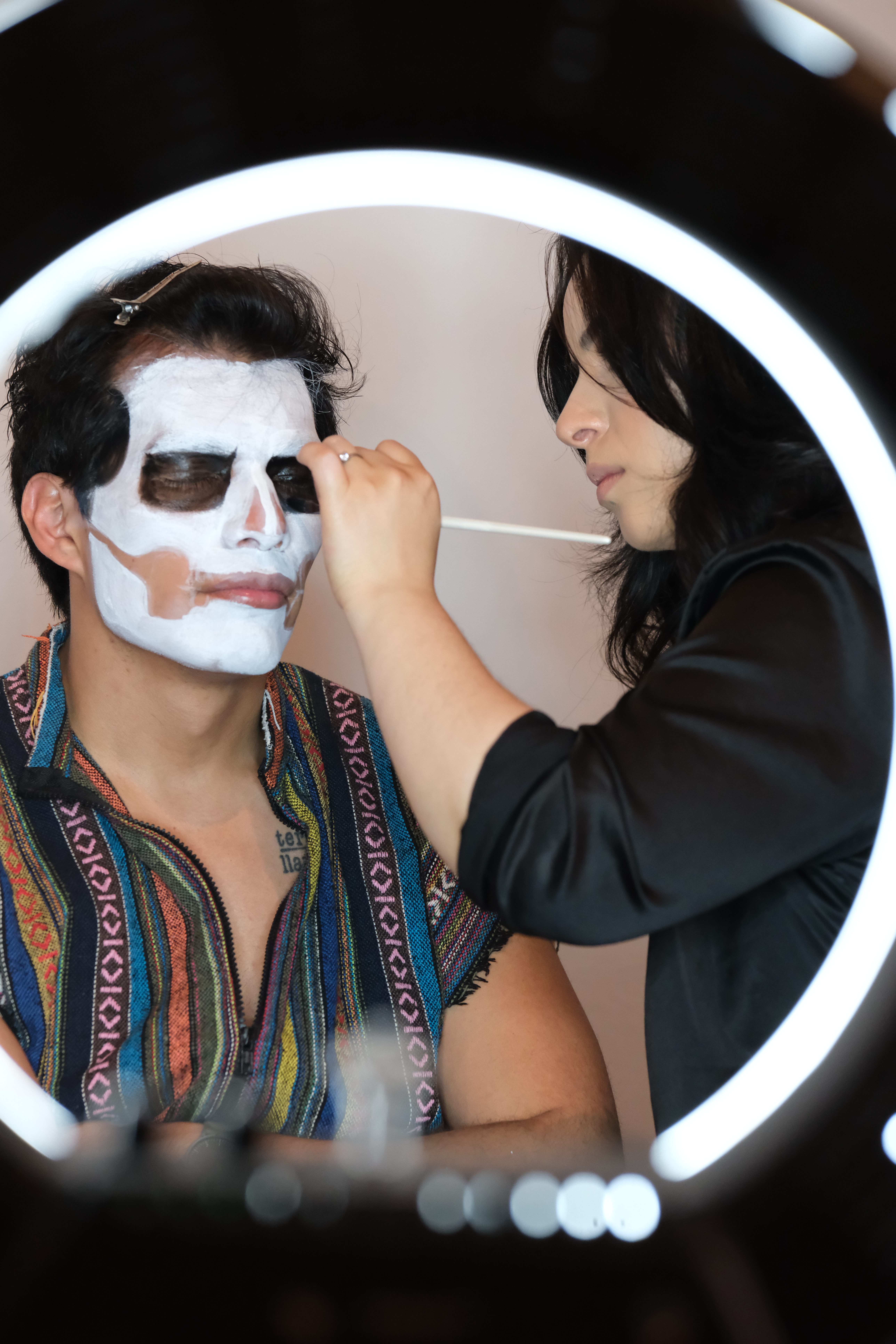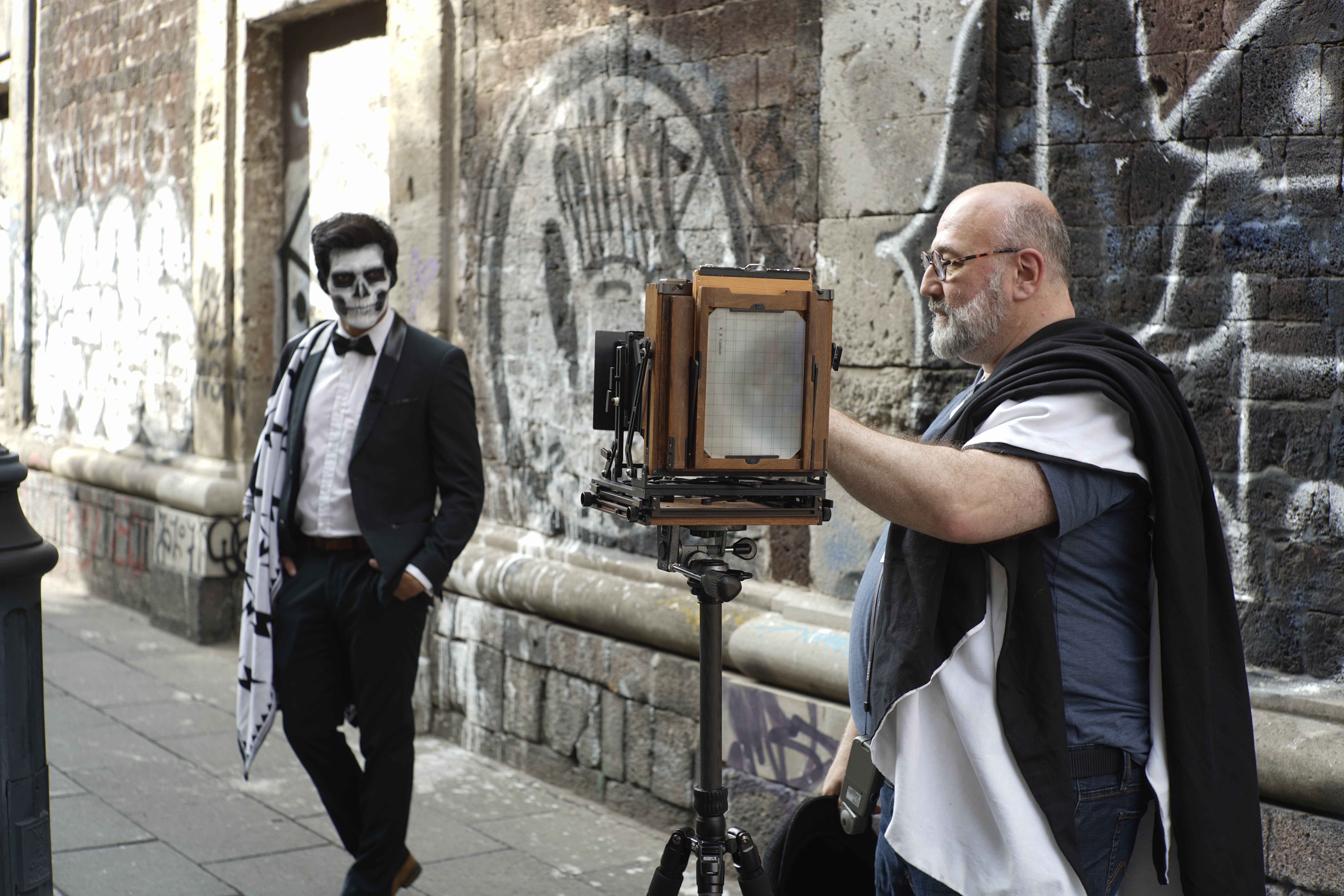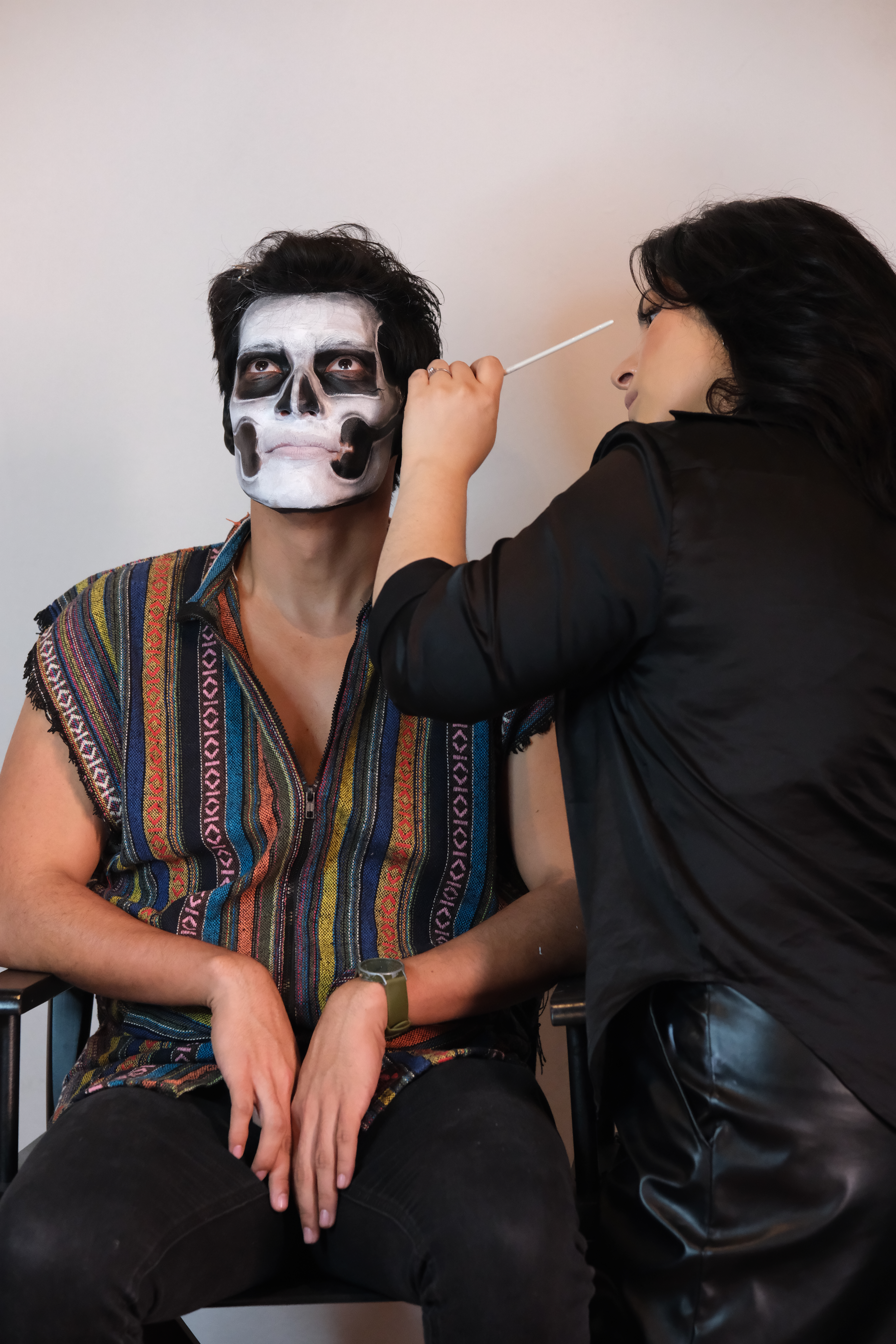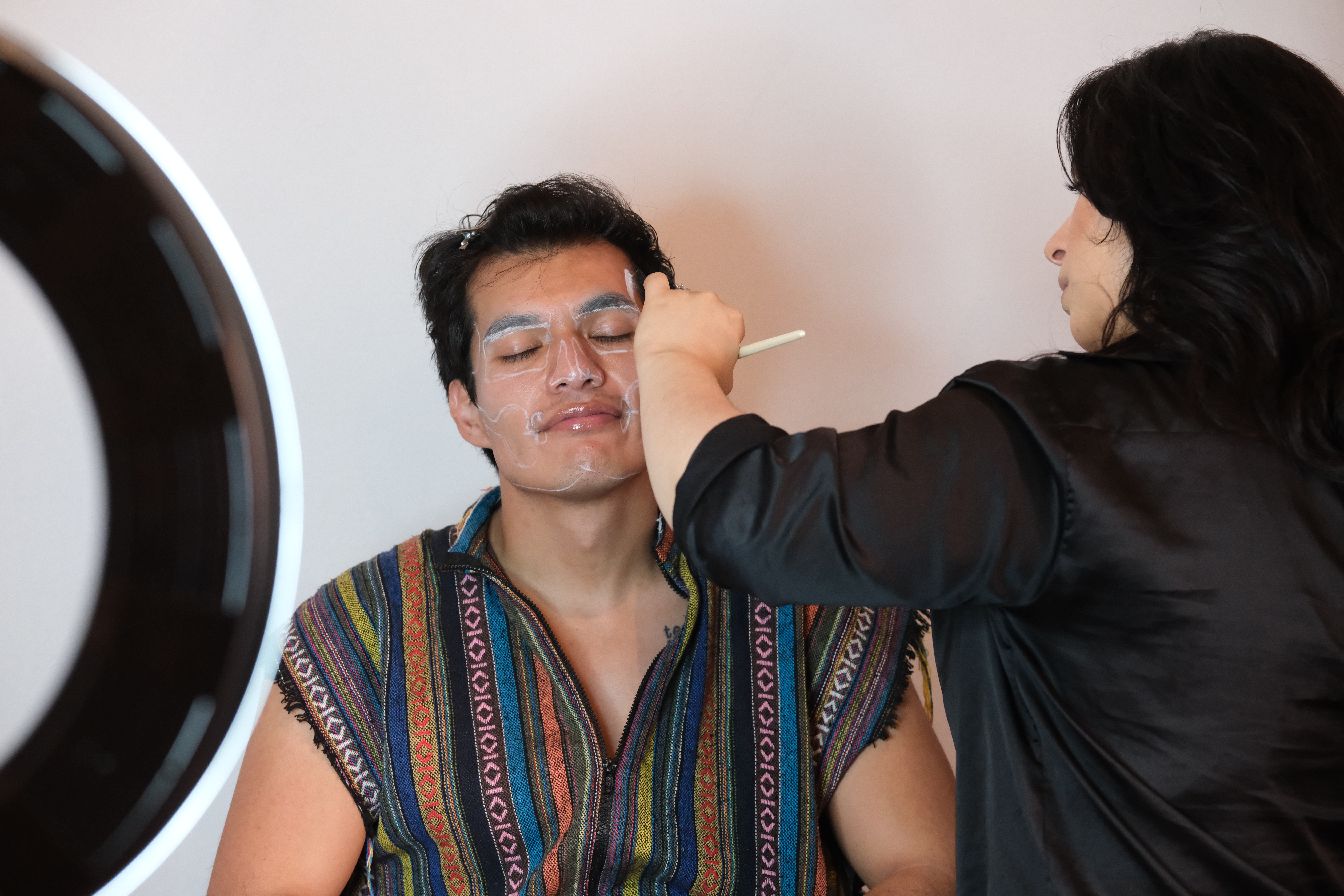 Rafa Farias getting his face paintedAnnie and Rafa working on his makeupThe beginning of the makeupRafa in ProfileRafa posing in front of graffiti at the Colegio de las VizcainasClose-up of RafaRafa head-onRafa getting his portrait done with a 5×7 inch view camera