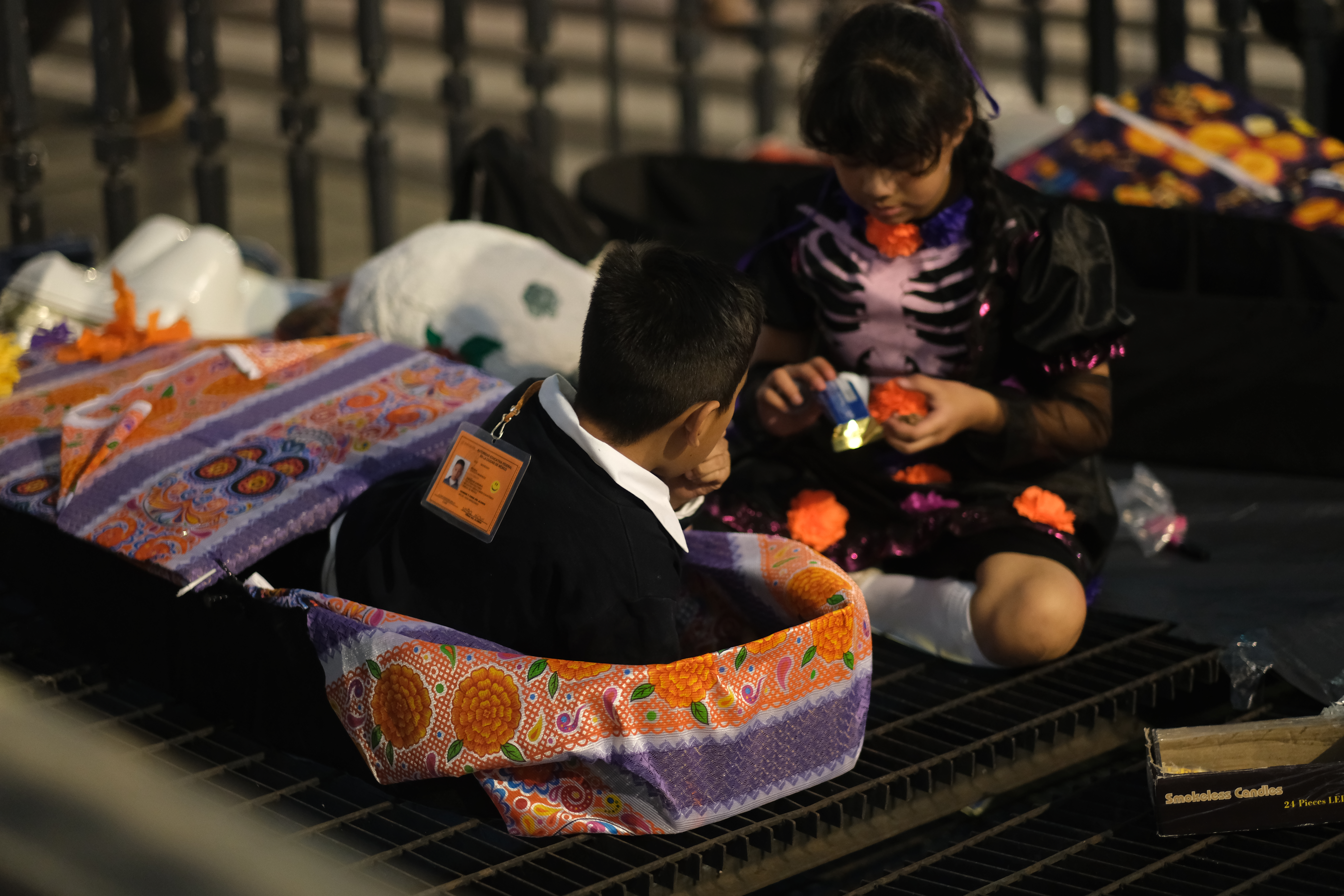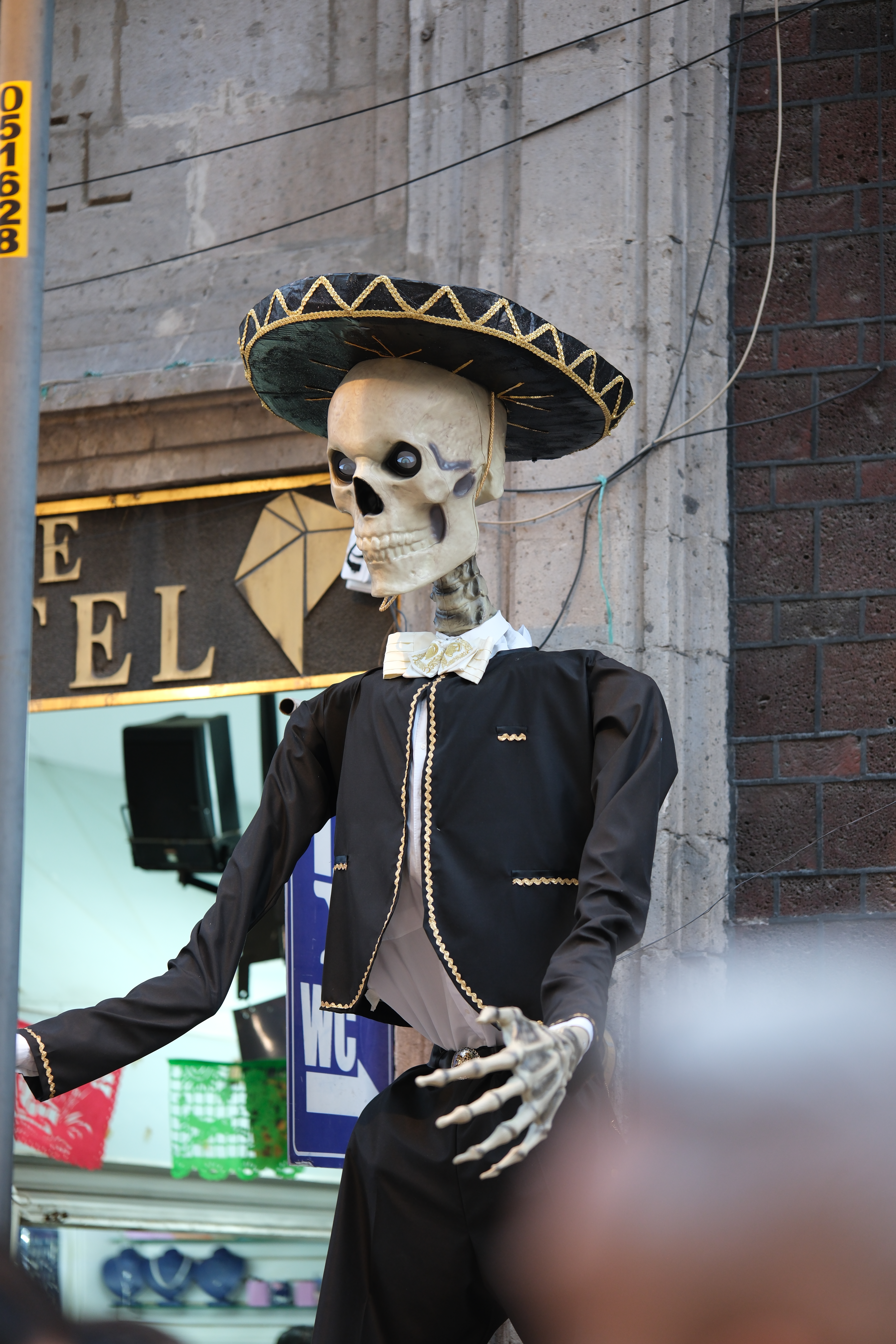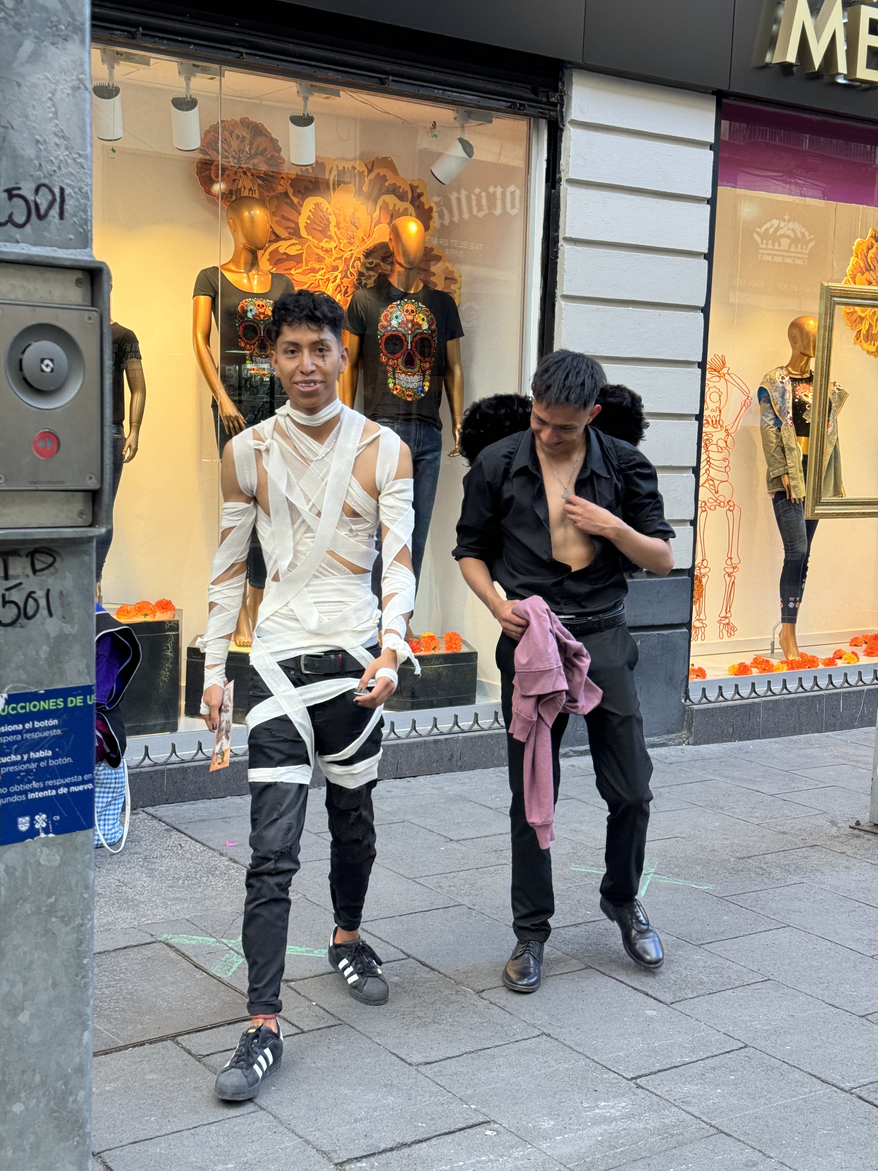 Boys on the street in Halloween attirekids dressed up on the Zocalo over the Metro entranceDay of the Dead figurines on Avenida Francisco MaderoDay of the Dead figurines on Avenida Francisco MaderoMarigolds on the patio in Coyoacán