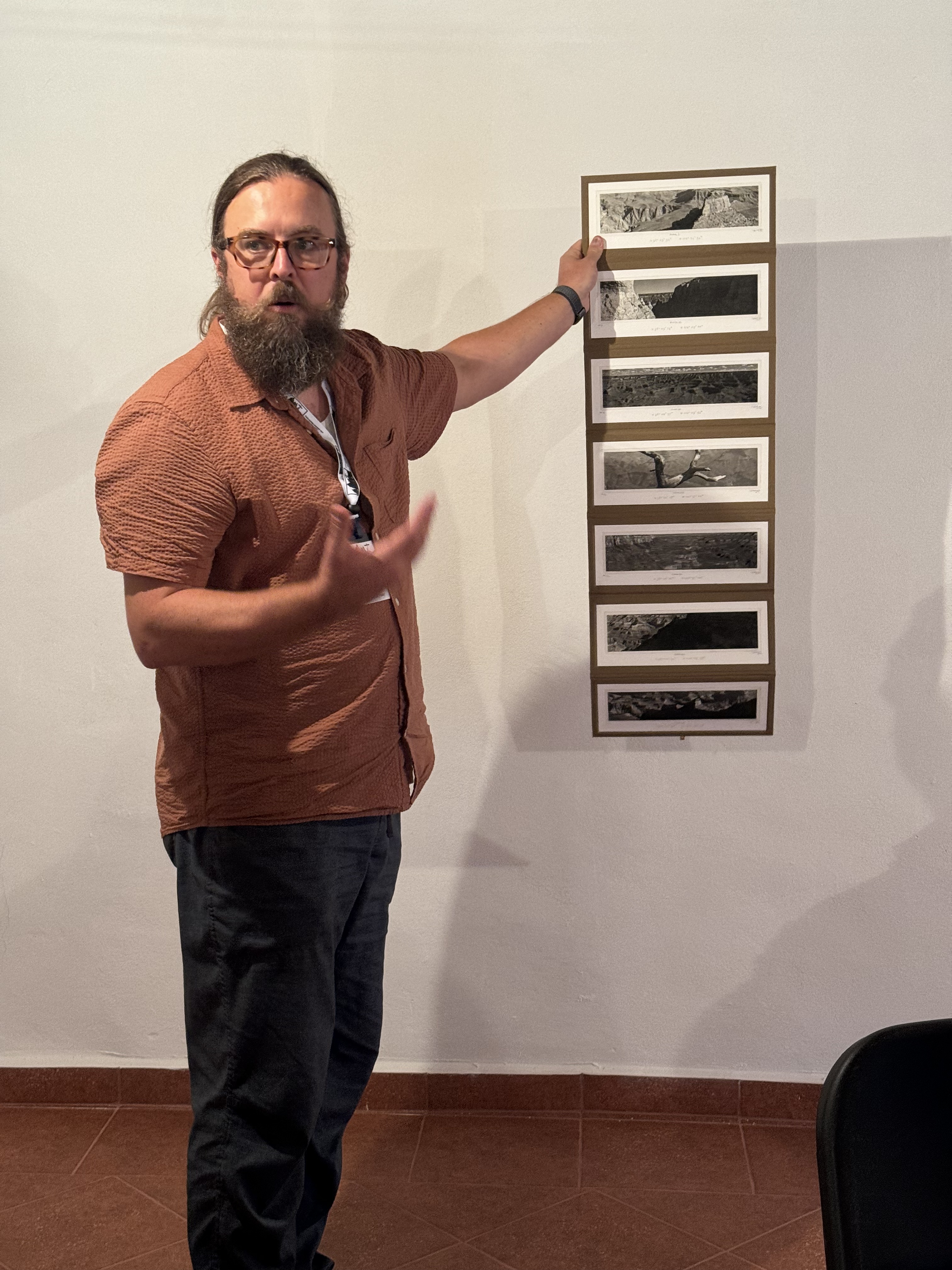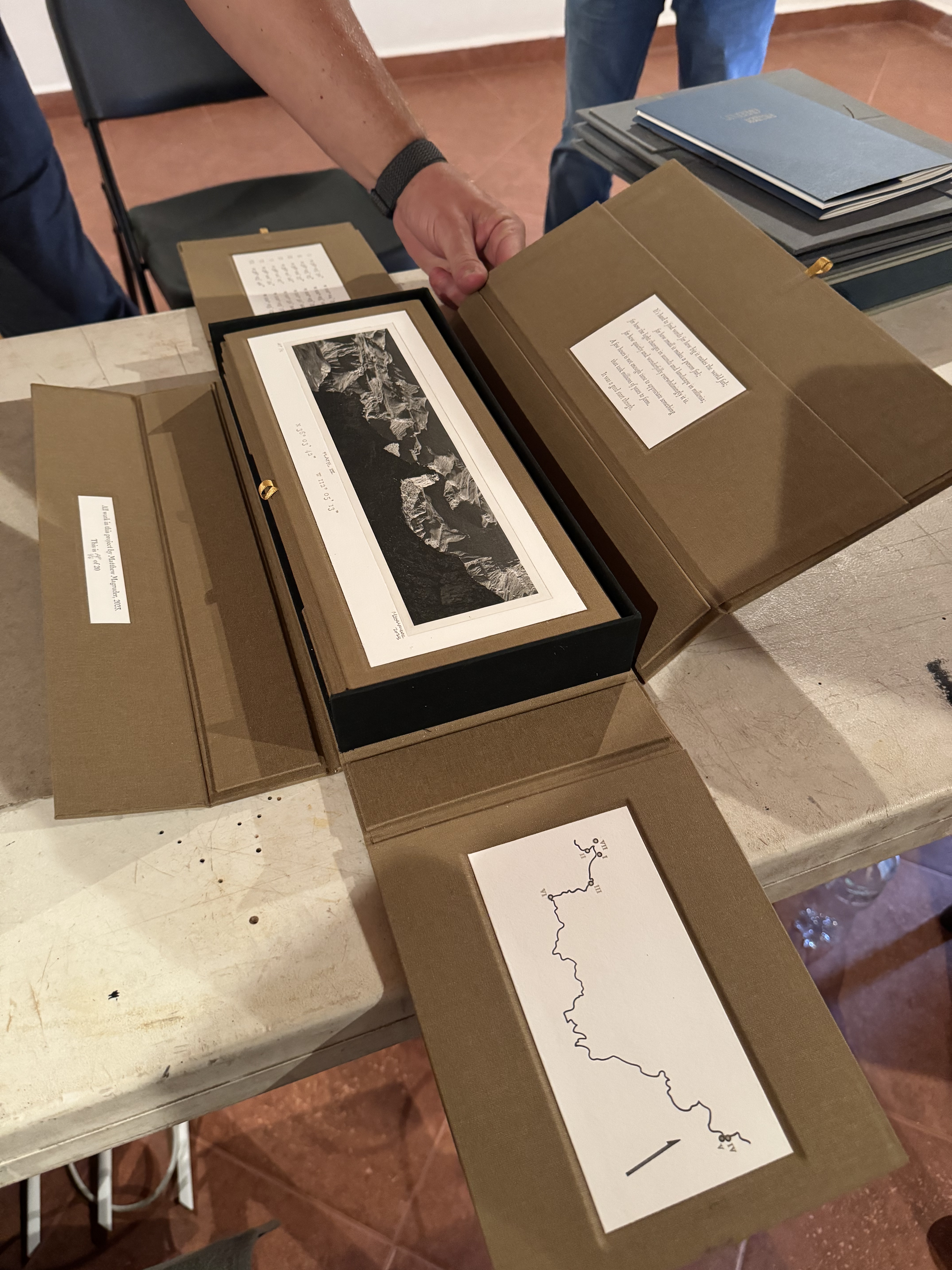 Matt Magruder and Craig Alan HuberMatt Magruder and one of his accordion bookshand-made book of panoramic imagesMatt Magruder demonstrating panorama bookCraig Alan Huber and a fine press book from Veritas EditionsCraig showing a print accompanying the book