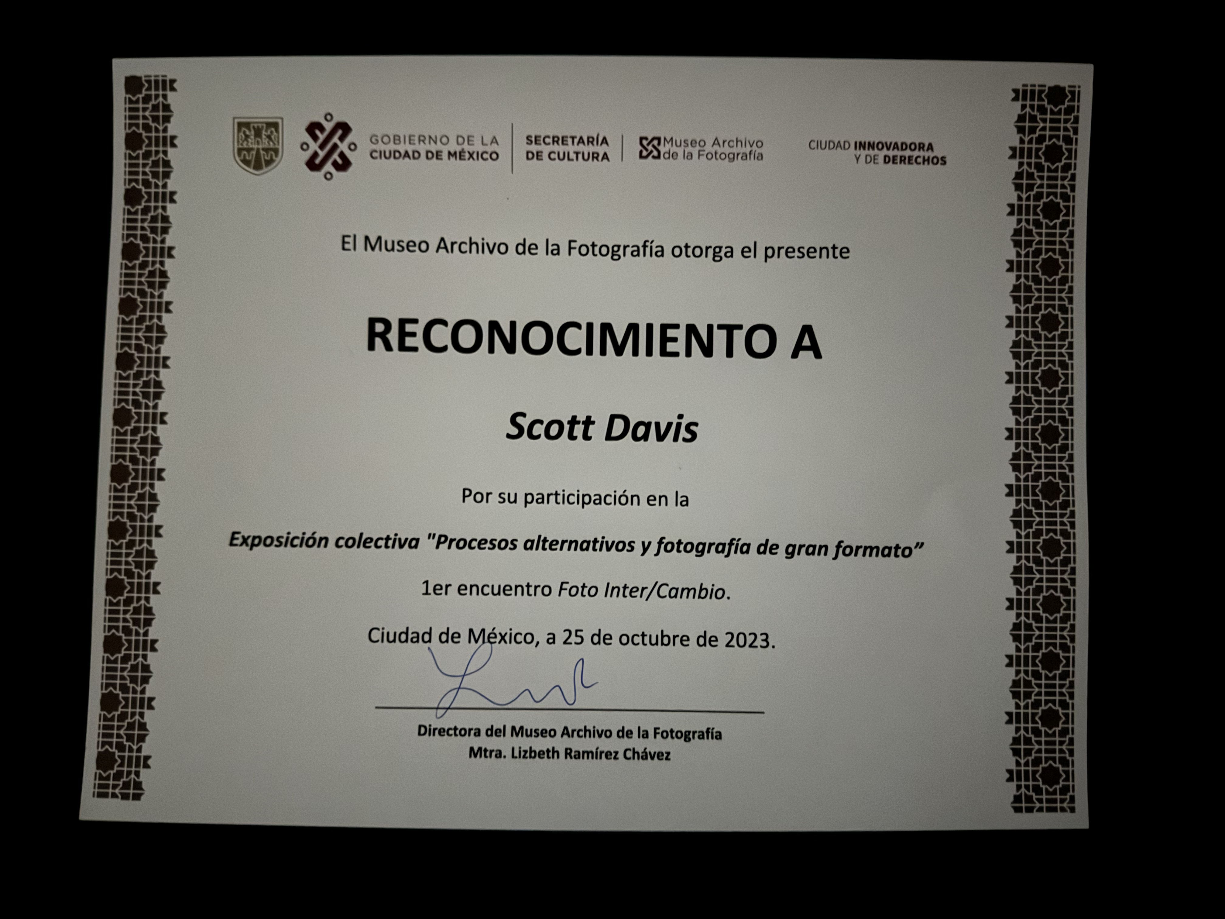 Another thank you goes to all the staff at the Museo Archivo De La Fotografía for their support. They provided us with a venue for our keynote events, and they expanded their offering of gallery space to turn what would have been a modest three-day pop-up show into a major, meaningful exhibition taking over an entire floor of the museum and running for two weeks. They also made me feel like a rock star – I got asked to participate in the ribbon-cutting to open the show, and received a certificate of recognition from the Secretary of Culture for Mexico City for my efforts. They’re also inviting me back to give a platinum/palladium printing workshop some time next year, and a show of my portrait and figure work.