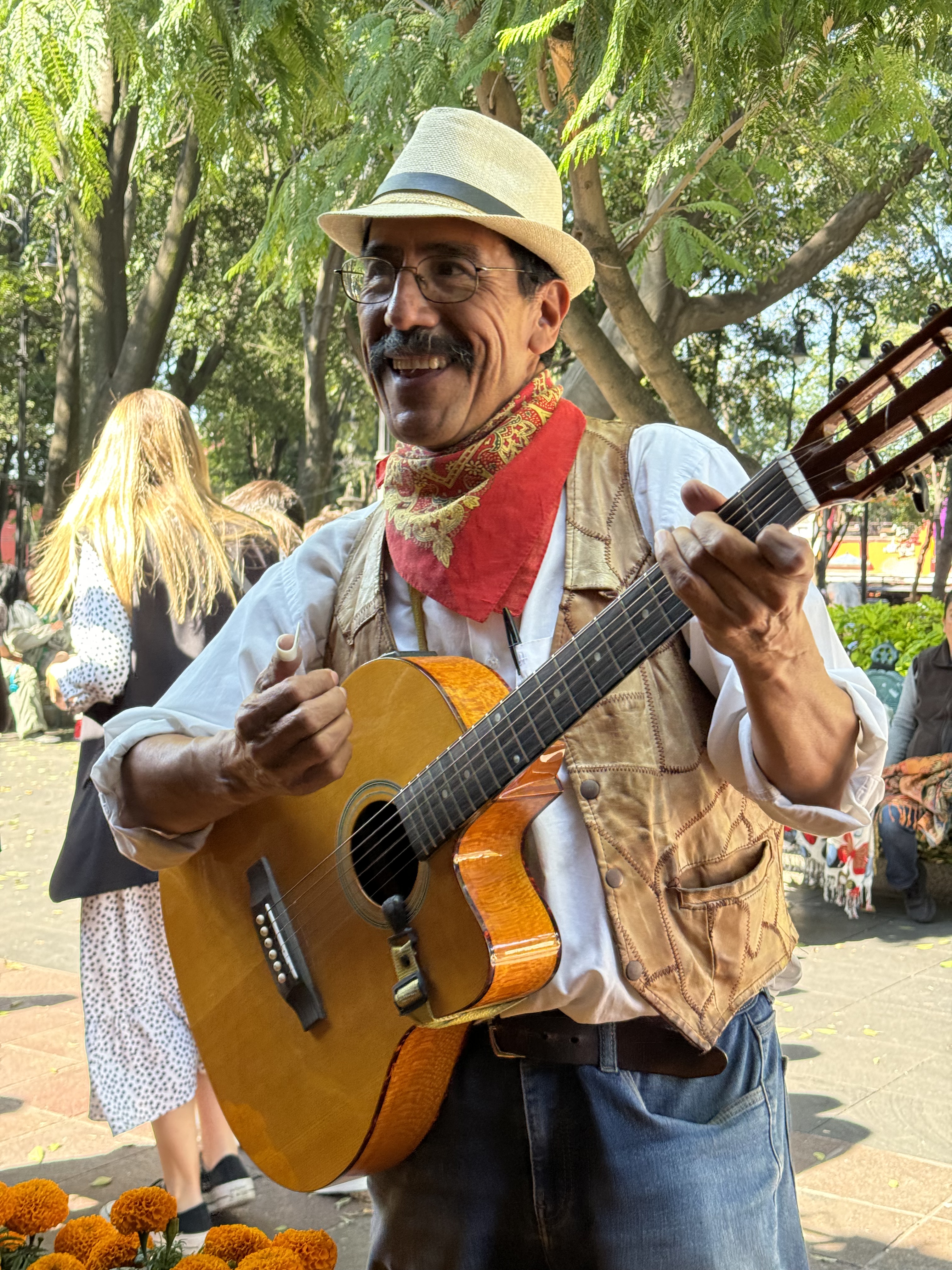 Troubadour in CoyoacánCheeky RapperDevil figurines in papier-mâché Vlad and Craig at lunch in Coyoacánmore papier-mâché devil figuresPapier-mache skeleton with skeletal dog and puppymore papier-mache figurinesSkeletonsmore skeletonsFuente de los Coyotes on the plaza in CoyoacánYoung punk with bifurcated makeupThe other side of the young punk