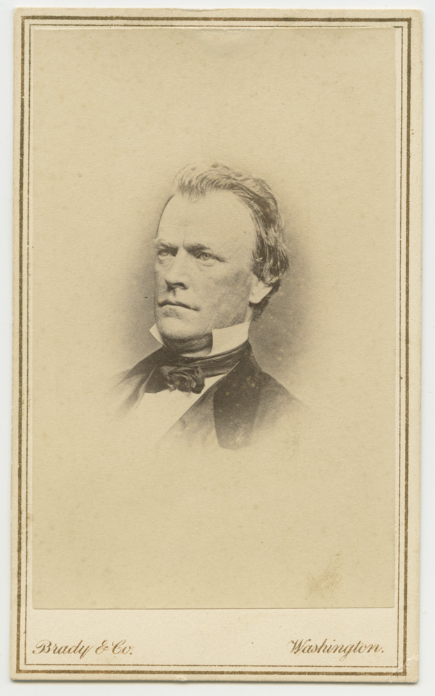 I’ve seen enough of Brady’s CDVs now that I’ve noticed a pattern in the labeling – if you want to tell which studio produced the image, first look at the front – if it says Washington or New York on the front, that’s a 100 % guarantee of where it was taken. If it is not labeled on the front, look at the photographer’s imprint on the verso. The studio that produced it will be listed first: a Washington DC portrait will say “No. 352 Pennsylvania Av., Washington DC & New York”, whereas a New York portrait will say “Broadway & 10th Street, New York, & 352 Pennsylvania Avenue, Washington DC”. Strangely, the Washington DC ones often list only “New York” as the second address, if they list it at all (I have seen it all three ways,”Broadway & 10th”, “New York” and no second address), but the New York ones seem to always list the full “352 Pennsylvania Avenue” as the second address. This of course does not take into account the E&HT Anthony CDVs, which do not list any Brady studio address, but rather state “Published by E & HT Anthony, 501 Broadway, New York” very prominently, and then include the following variations: