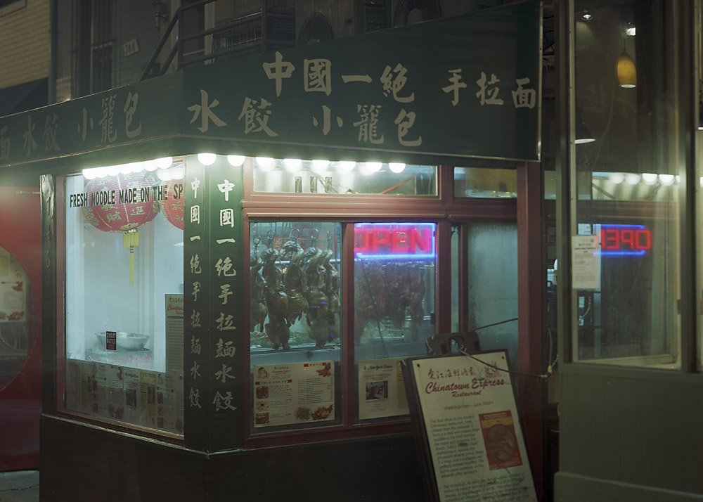 The fresh noodles and Peking duck house on 6th Street, NW. I think someone needs to teach them about Windex, as the “OPEN” sign is fuzzy not from being out of focus in my composition but from the splattered duck fat on the window. And no, I’ve never eaten there to know if the food is any good or not. But if you’re lucky when you wander by you can watch them making traditional Chinese noodles in the window, stretching and re-folding the dough over and over and over again, then cutting the ends and BOOM! you’ve got all these separate strands of pasta.