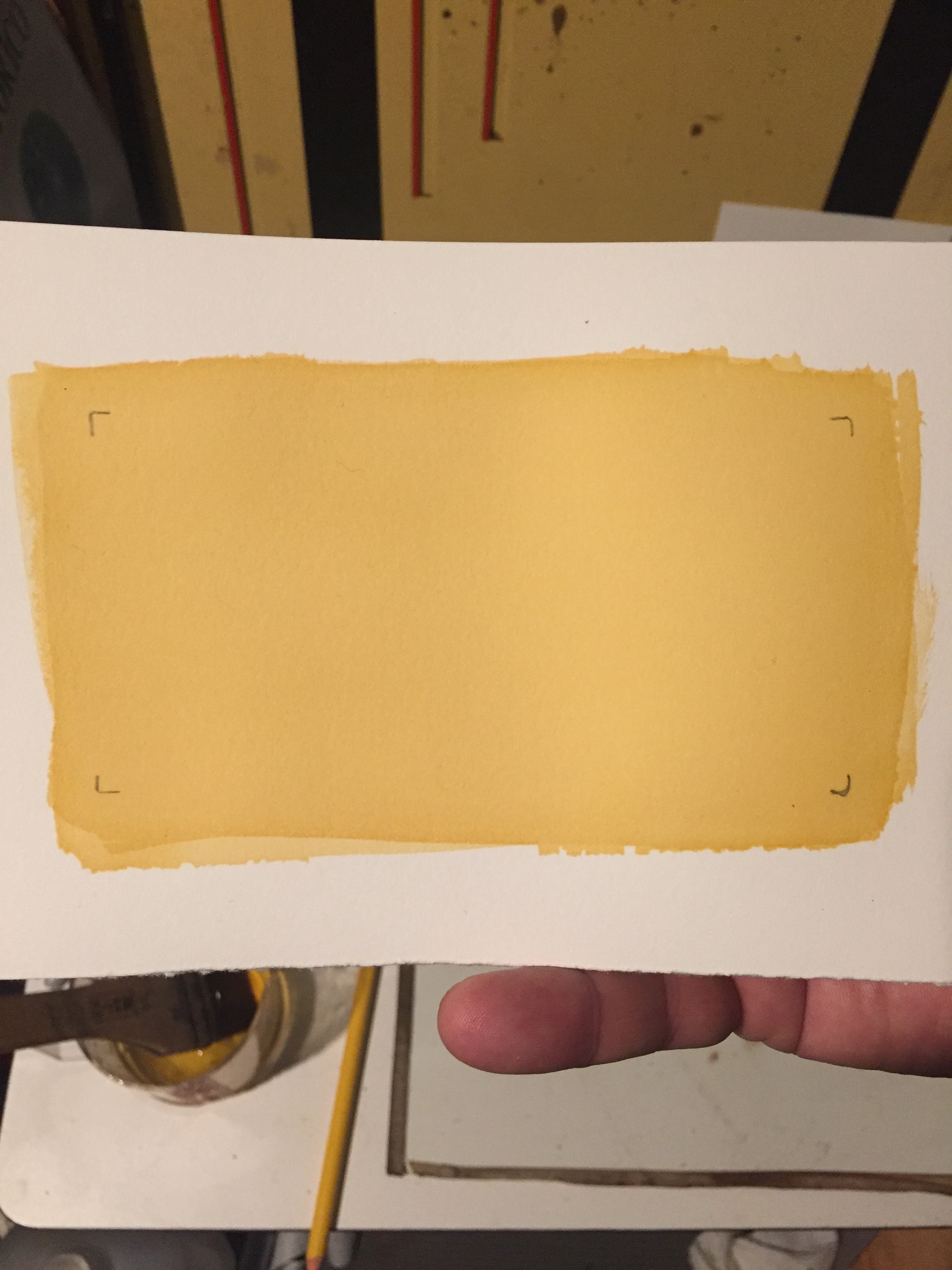 This is what the raw, unexposed double-coated emulsion looks like. I double-coat to get better shadow depth and highlight separation. You can see the two coatings on the lower left. The reason I’m willing to double-coat is that I’m making such small prints that the extra cost isn’t prohibitive.