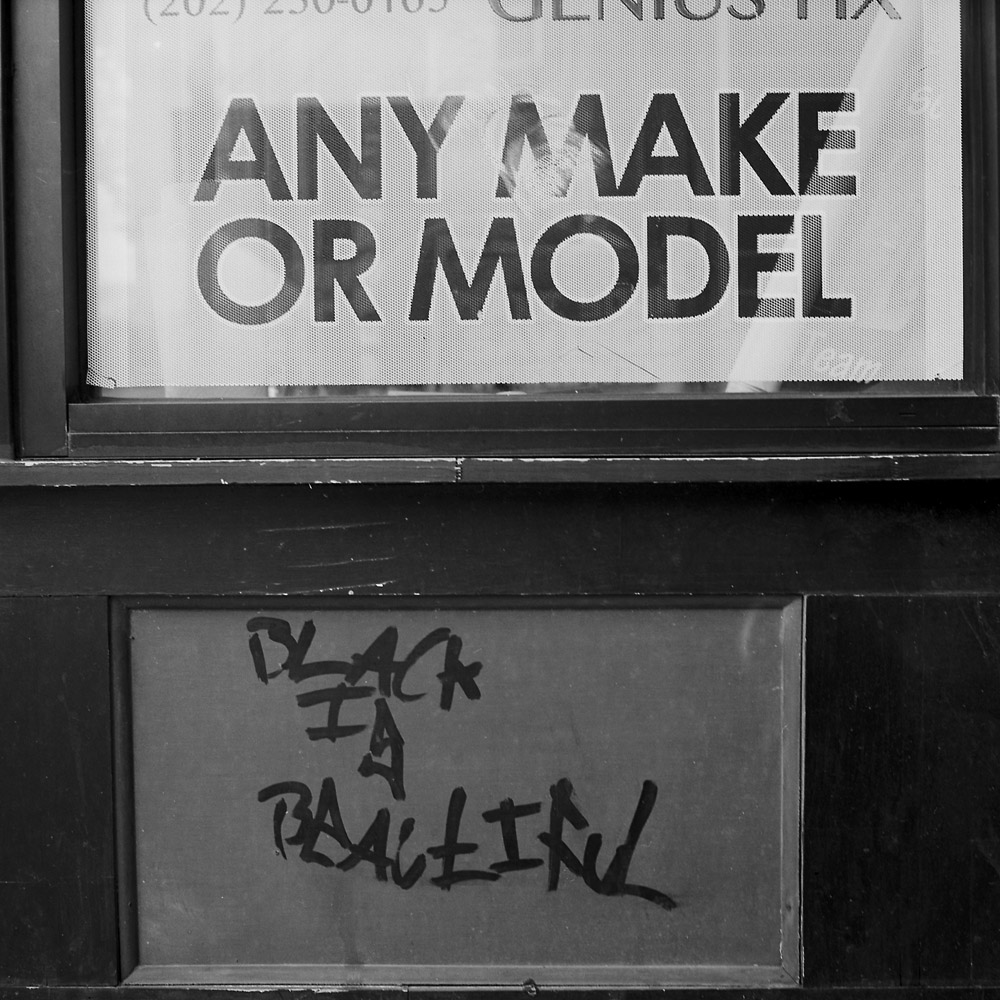 I loved the serendipitous juxtaposition of the advertisement wording for the cellphone repair shop and the graffiti – “Any Make, Any Model… Black is Beautiful”. There’s truth in accidents. Or maybe it wasn’t an accident.