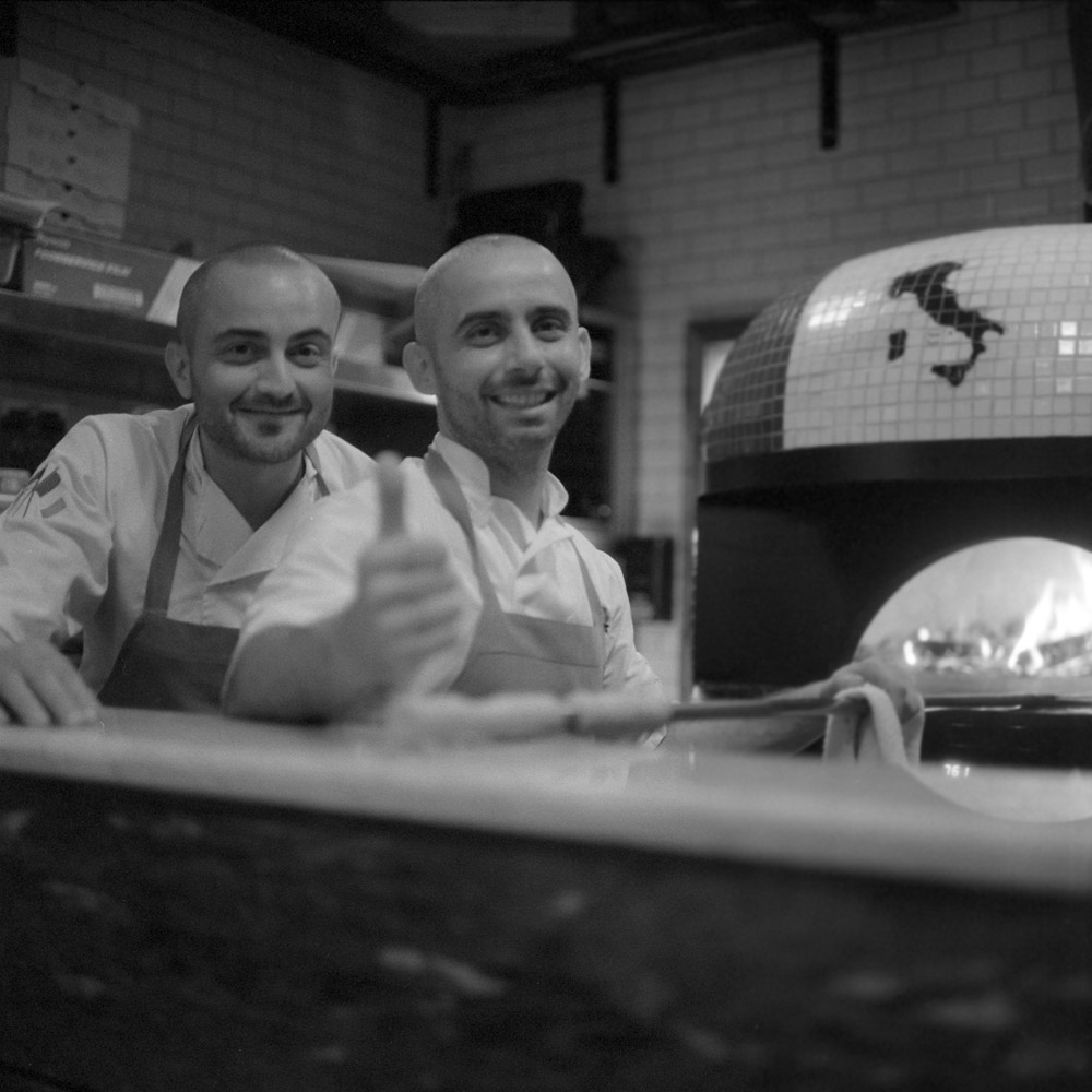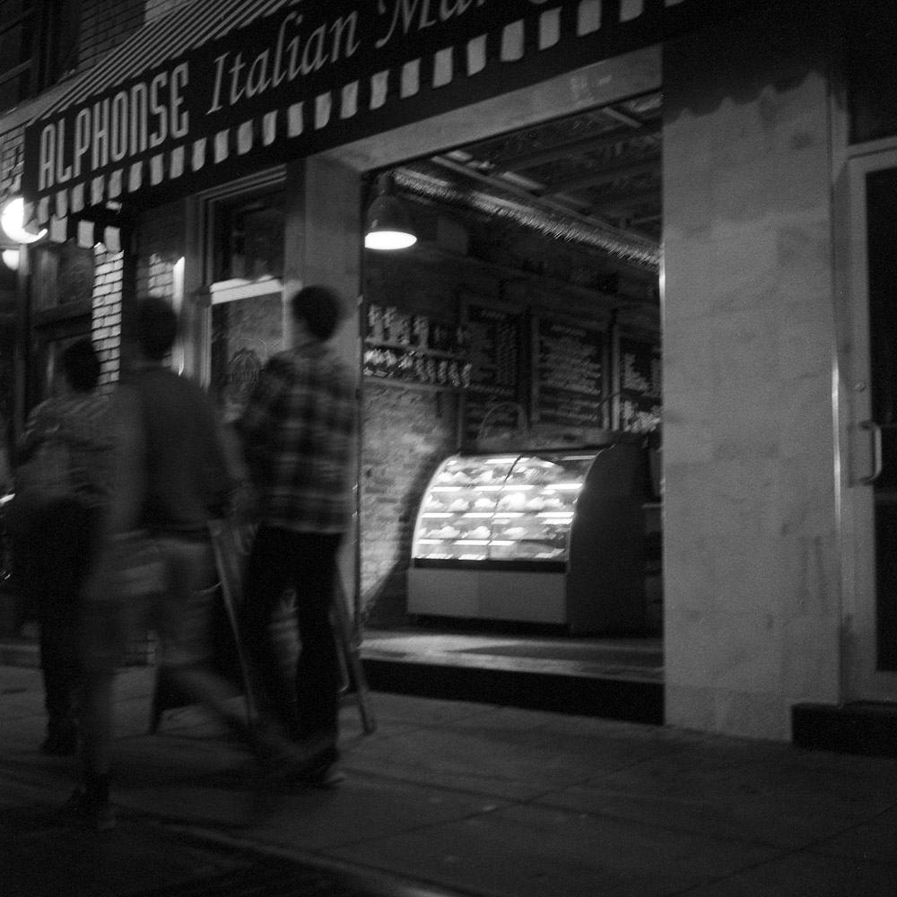Alphonse has their own wood-fired pizza oven. One of their pizzas is next on my list of things to try. I had the Rollei with me as usual, and everyone on the staff was particularly appreciative of it. I was trying to take a shot of the pizza chefs working at the oven, but one of them caught me out of the corner of his eye, turned, and they both mugged for the camera.