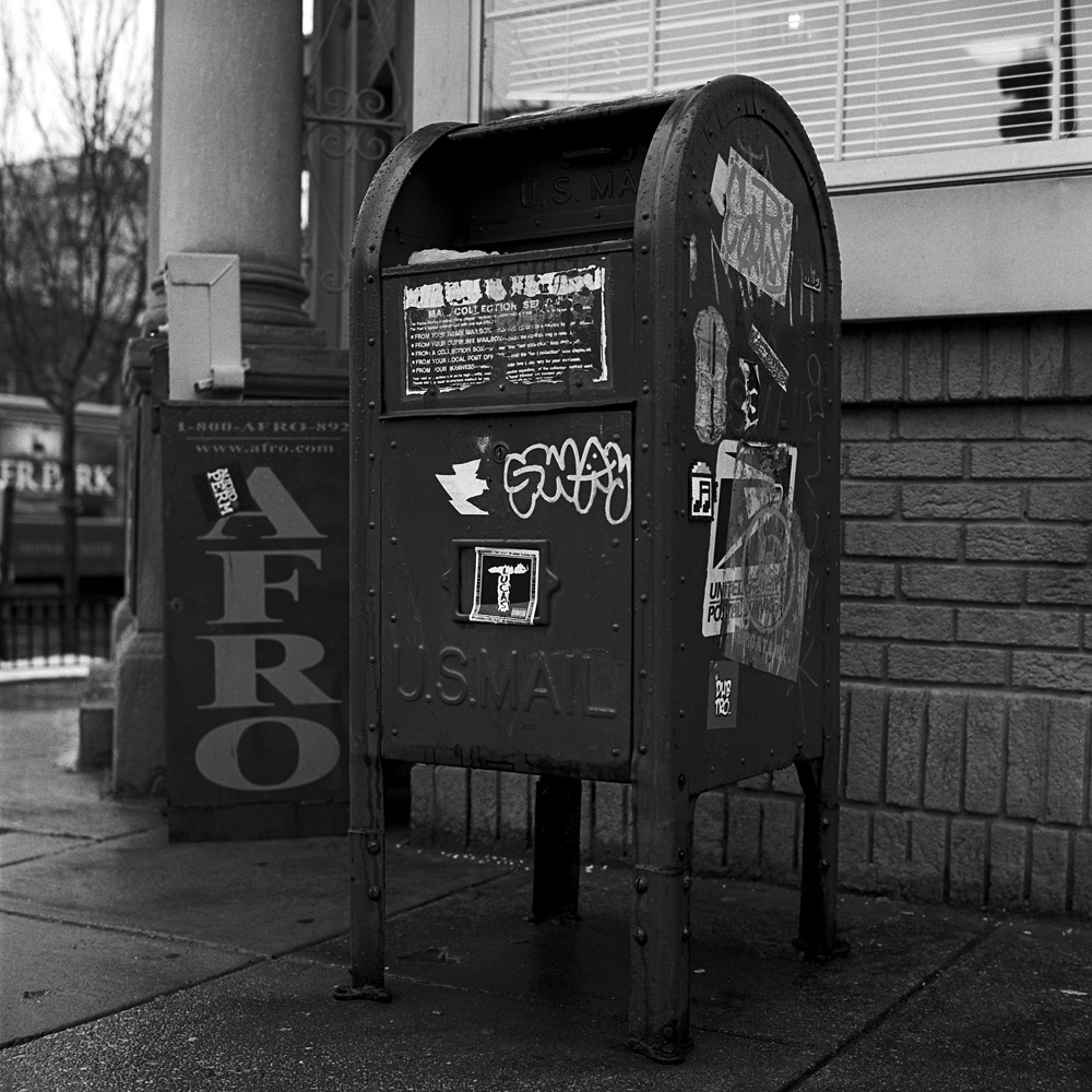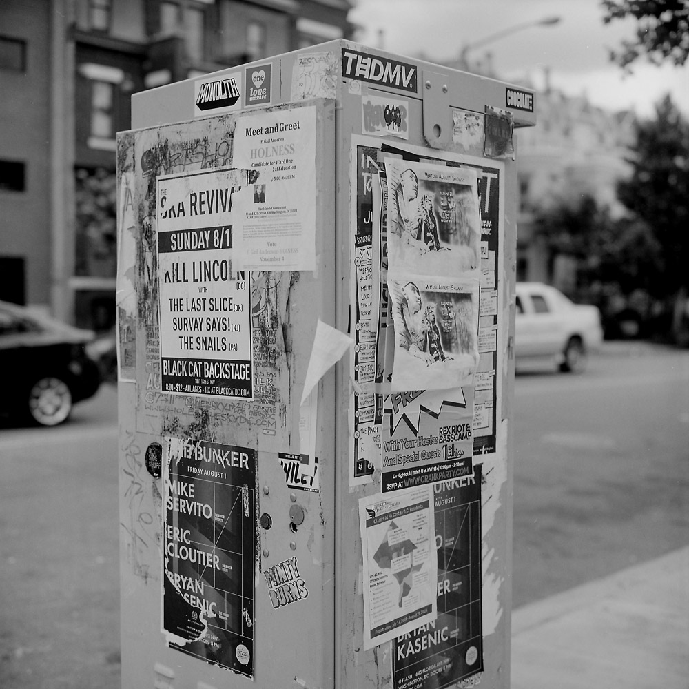 I’m always looking for images of things to add to my “Portraits of Everyday Objects” series. This mailbox, outside the Industrial Bank building on U Street fits the bill, looking somewhat forlorn with all its graffiti.