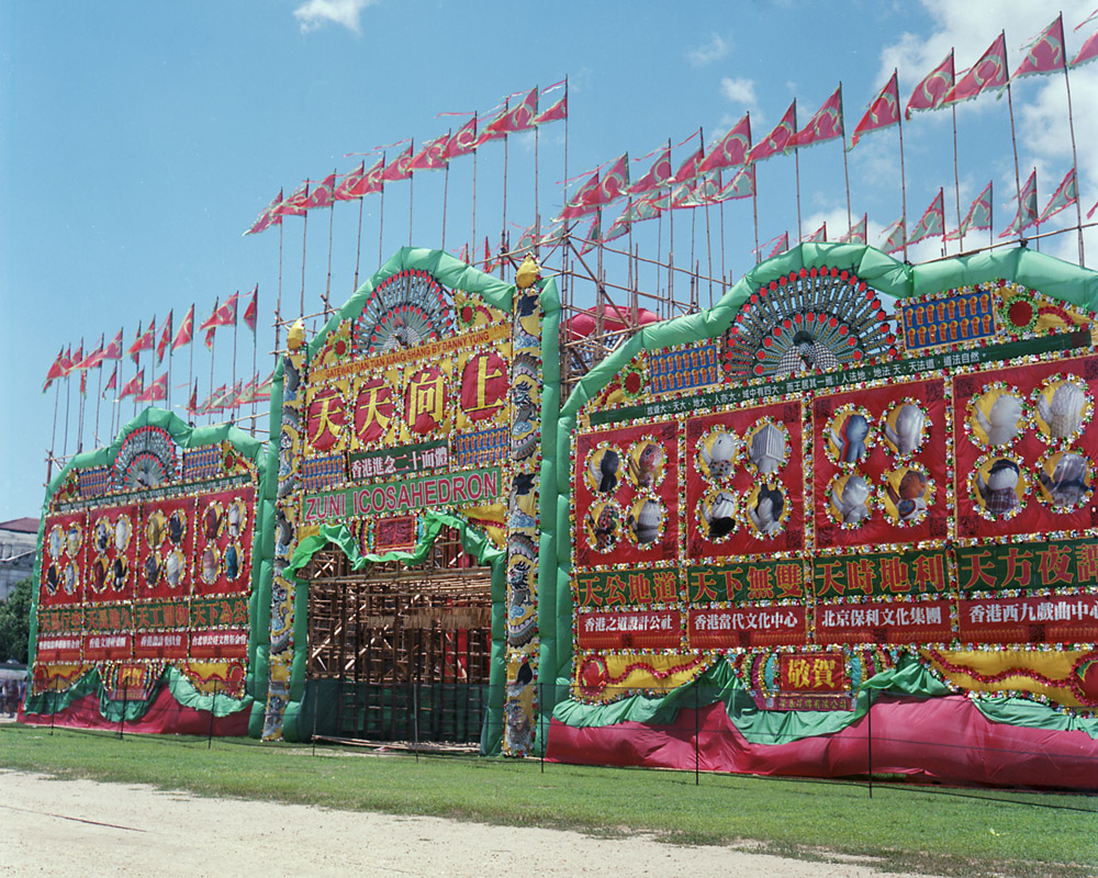 You could see this pavilion on the mall from 14th Street every day driving by. I wondered what it was all about and had to stop and see it close up. The building is built like a traditional Chinese city gate, but made of a bamboo frame and covered in paper. I never did see what the Zuni Icosahedron thing on the front of the gate meant.