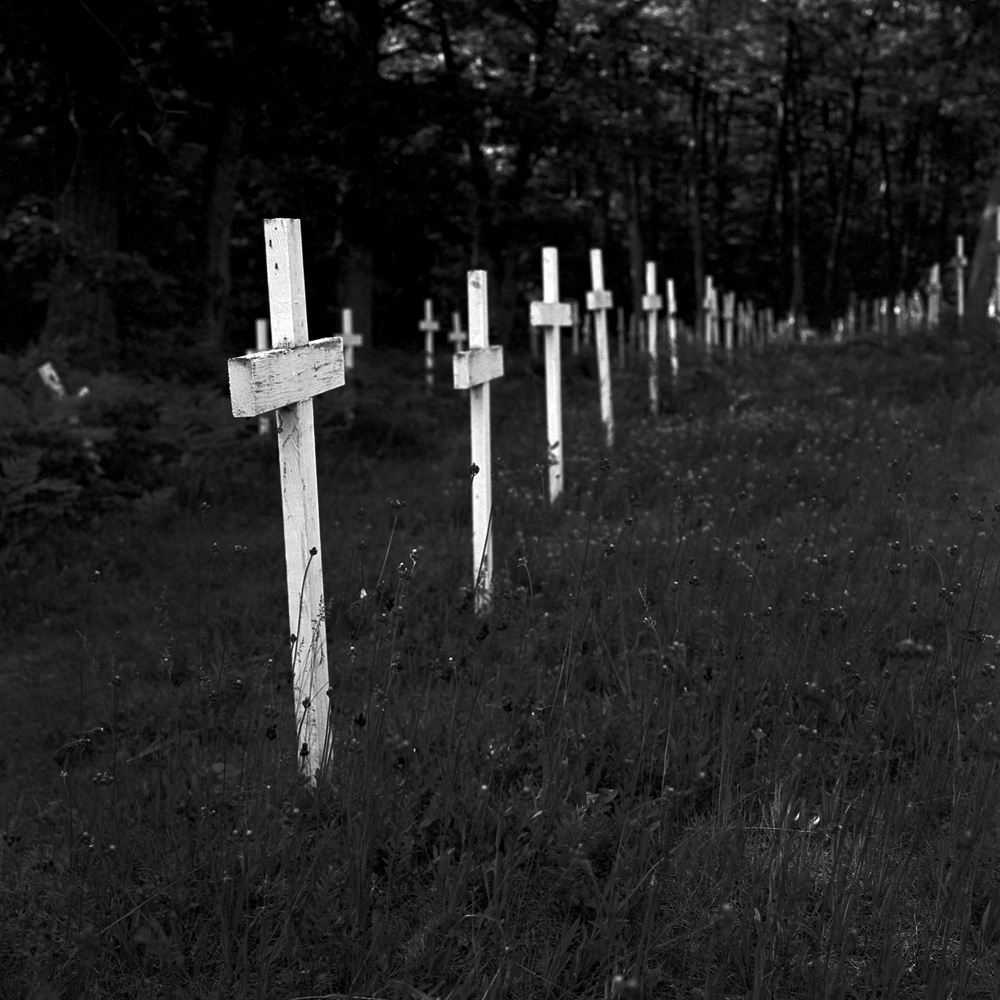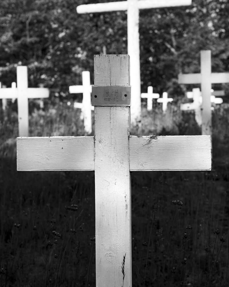 Here is a close up to show the tin markers with the names and biographical data on the crosses.