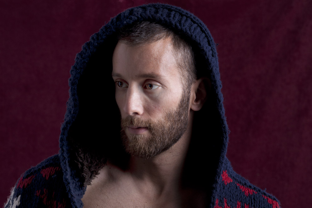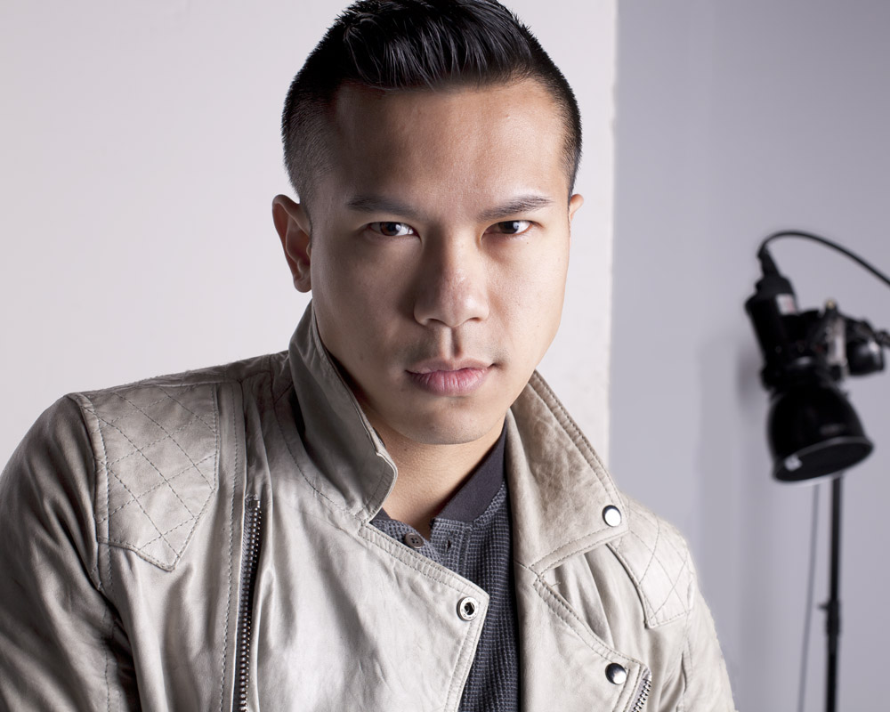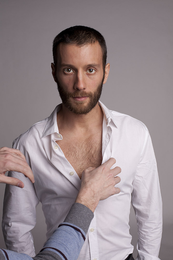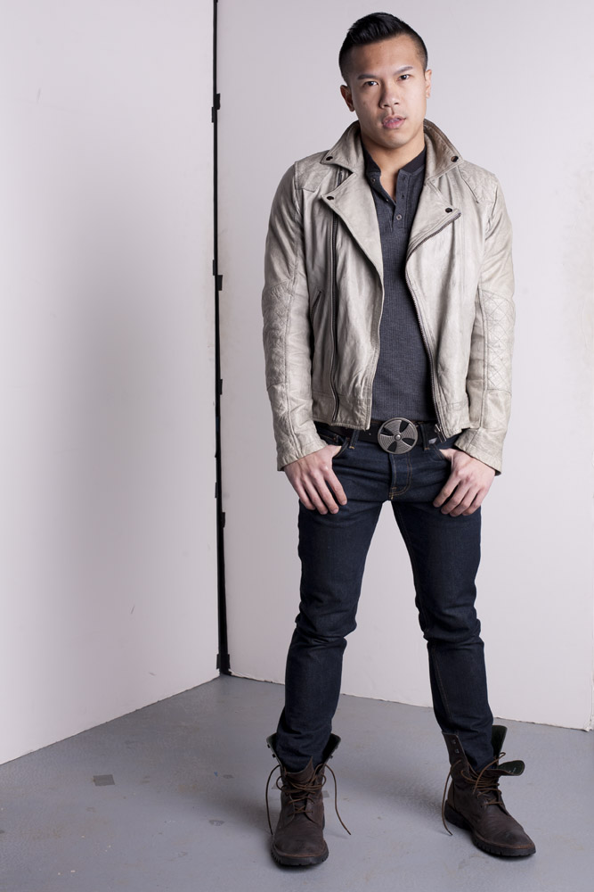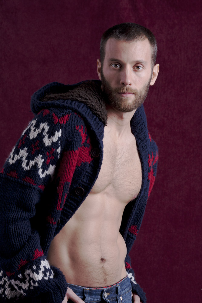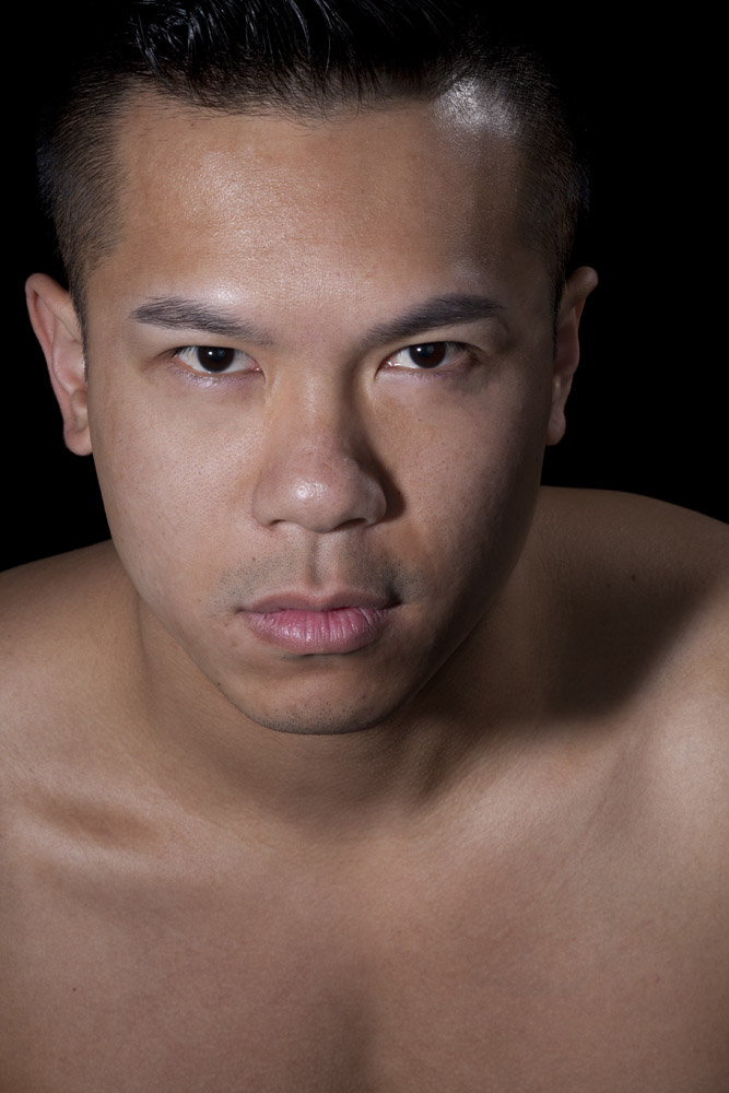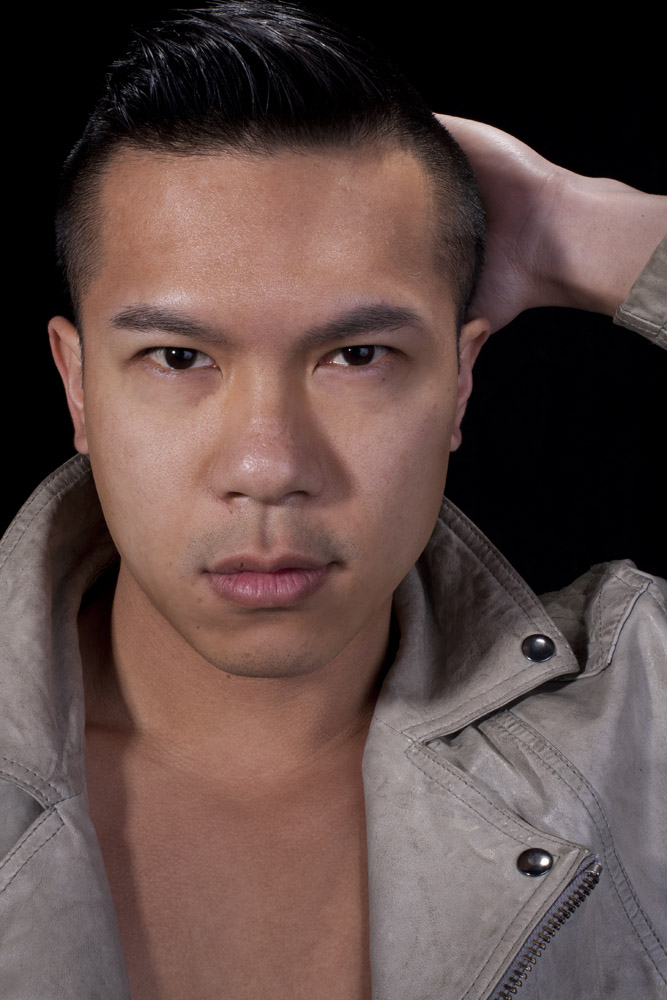 Mustafa has a great face – he looks good from lots of angles. When posing a model or a portrait subject, you want to make sure that you’re not doing anything un-flattering. If you’re turning the head away from front-on, you want the nose to either obviously stand back from or break the contour of the cheek so you don’t inadvertently flatten it by having it by having the tip of the nose meet the outline of the cheek. At the same time, pay attention to the eyes – you want to see whites on both sides of the iris. If you turn someone’s head in part profile and then have them look back at the camera with their eyes, the irises in the corner of the eye make them look like a psycho-killer. In these shots it works because he’s looking the same direction with his eyes as his face is pointing.