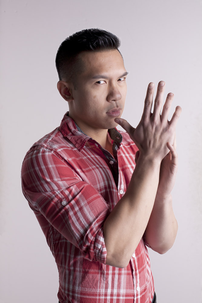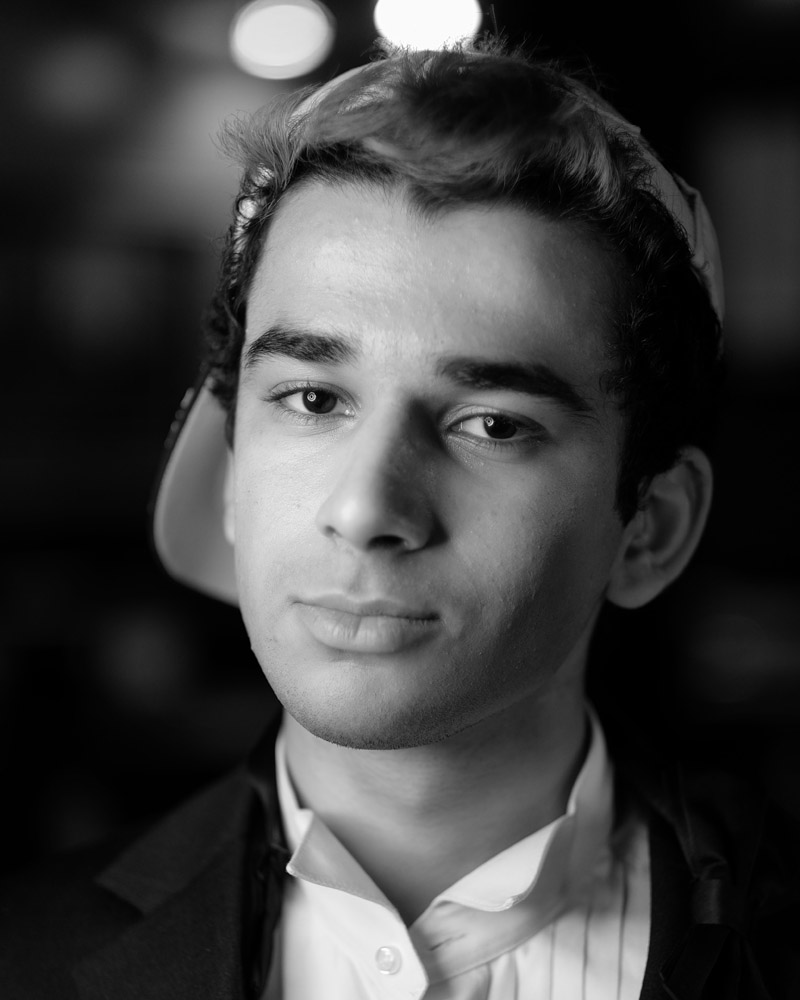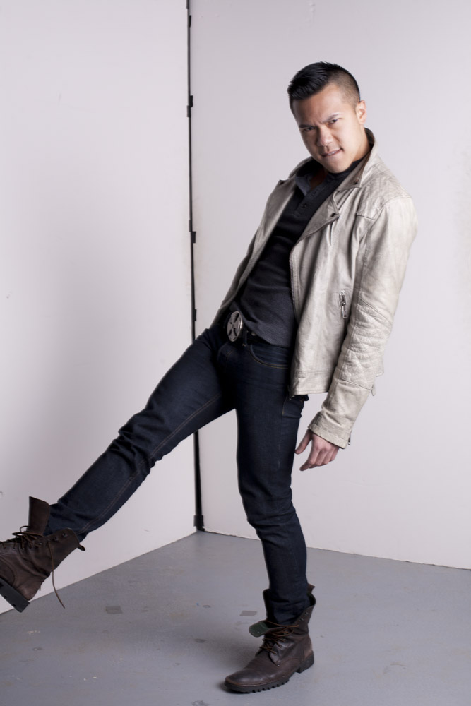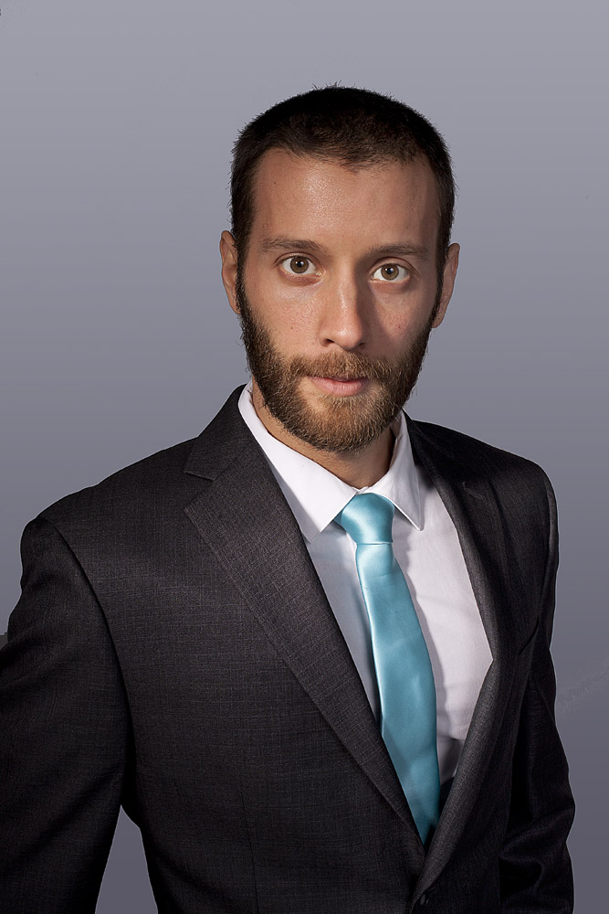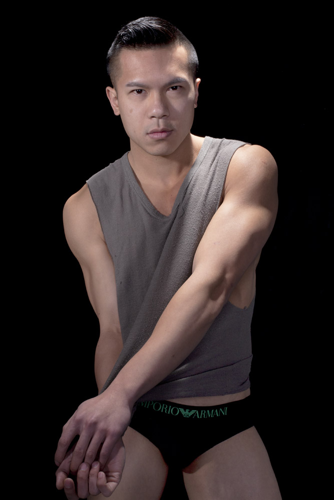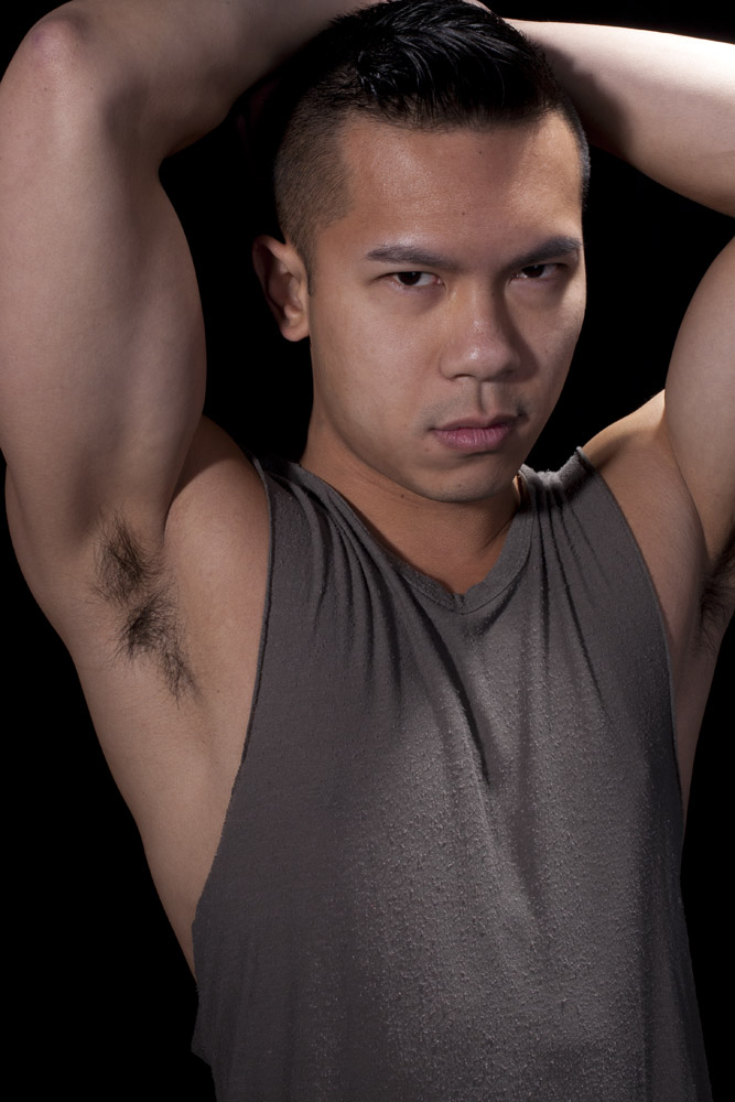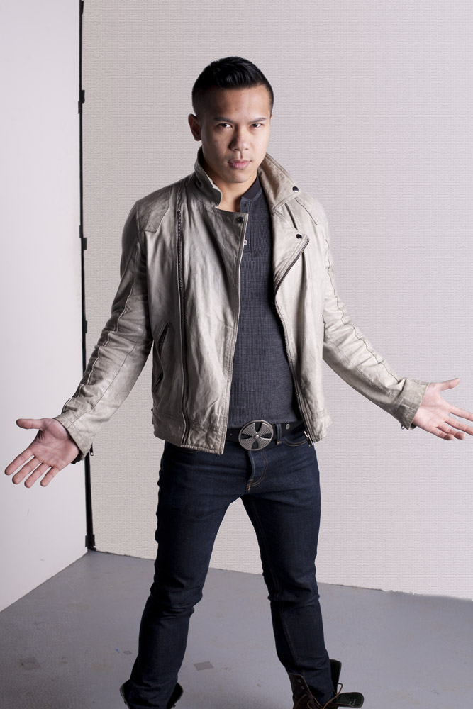 Mustafa has a great face – he looks good from lots of angles. When posing a model or a portrait subject, you want to make sure that you’re not doing anything un-flattering. If you’re turning the head away from front-on, you want the nose to either obviously stand back from or break the contour of the cheek so you don’t inadvertently flatten it by having it by having the tip of the nose meet the outline of the cheek. At the same time, pay attention to the eyes – you want to see whites on both sides of the iris. If you turn someone’s head in part profile and then have them look back at the camera with their eyes, the irises in the corner of the eye make them look like a psycho-killer. In these shots it works because he’s looking the same direction with his eyes as his face is pointing.