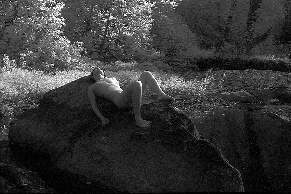 These are some from my vaults. I was doing some clean-up in my library and went through my catalog of negatives, and came across these. I shot these on the old Kodak HIE infrared film. Alas, not only is HIE no more, but virtually all IR-sensitive films are gone now too, other than Ilford’s SFX and Rollei IR. Kodak HIE was the king of the crop, having far greater infrared sensitivity than the others (it topped out over 900nm, whereas most of the other films were 820nm, or even 750 with the Konica). It produces a beautiful pictorial effect, and made for some very interesting figure studies. I only ever got to shoot a few rolls of it before it was gone, and the few I had stashed didn’t keep well, even in cold storage. Lots of people have asked about bringing Kodak HIE back as a product – I would love to see it happen, but it isn’t going to. Here’s why – the infrared sensitivity is effected by a specialized dye. The dye requires chemicals that are A: rare, B: very expensive, and C: don’t age well. To meet the minimum manufacturing requirements, very large quantities of the dye would have to be made. At the end of the products’ commercial life, Kodak was not selling enough of the film to cover the cost of the dye, and it was generating tremendous waste as the dye was going bad before the current stock would be sold, so they were not only throwing away dye, they were throwing away finished product.