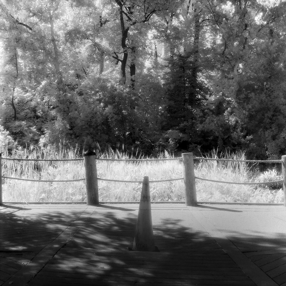 The Rollei is a perfect camera for Infrared photography because you can focus and compose your images with the unfiltered viewing lens, so you don’t have to keep taking the filter on and off (the strong infrared filters like the Hoya RM72 I used are anywhere from nearly to completely opaque to the visible spectrum, making it very difficult at best to operate the camera with the filter installed on a single lens reflex camera).