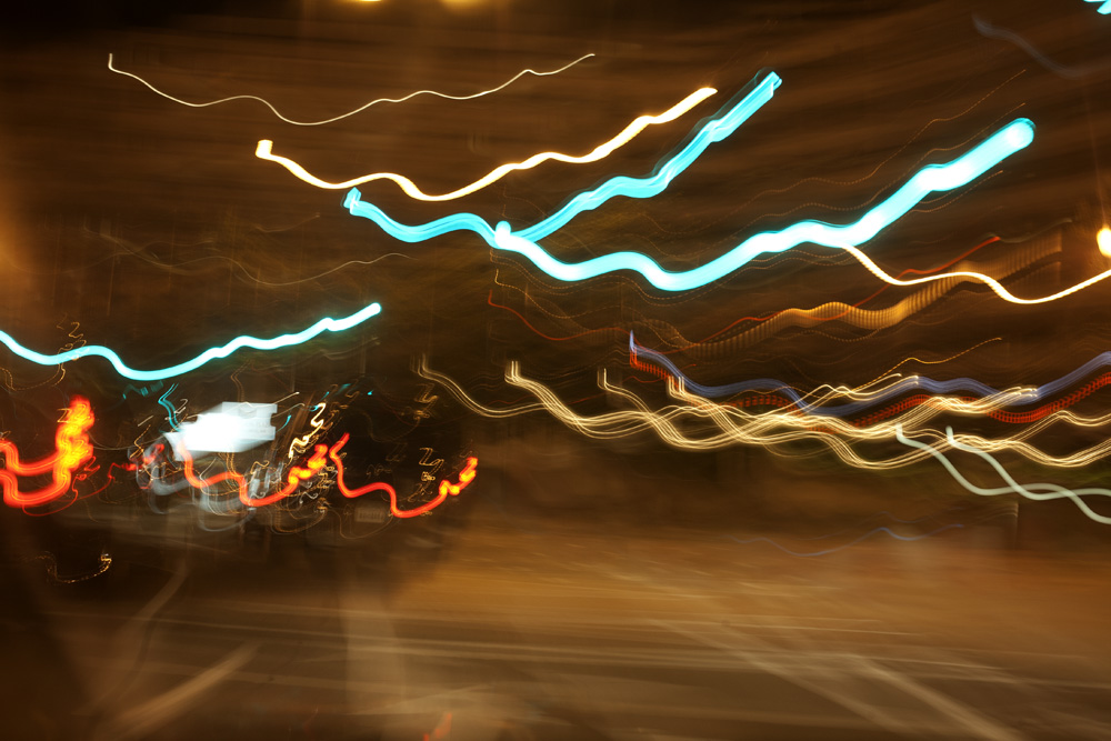 It isn’t perfect because with the long exposures (45-90 seconds each – I forget which I used, but as you can see they’re all exactly the same) traffic patterns don’t flow through the underpass during all three exposures, and the lens flare from the street light in the middle picture doesn’t carry over to the same degree in the left picture, thanks to the lens hood. But you have to look at it to see the three frames separately.