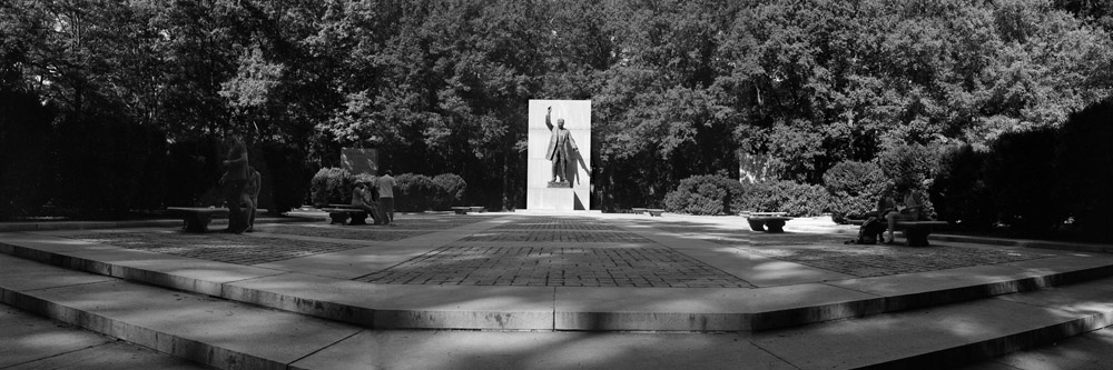 I didn’t photograph the inscriptions on the marble slabs around the periphery of the Roosevelt monument because I think that A: those kinds of photos make for very boring photos, and B: the rendering of those quotes into two dimensions grossly undercuts the meaning of the quotes and the experience of reading them in-situ. I would strongly suggest, though, that anyone interested check out The Theodore Roosevelt Center website for the full extent of the quotes. They are profound meditations on the nature of man and his environment, politics, and government every bit as appropriate and relevant today as they were when Teddy was president at the dawn of the 20th century.