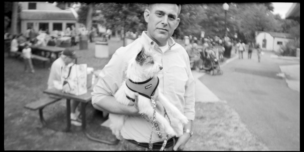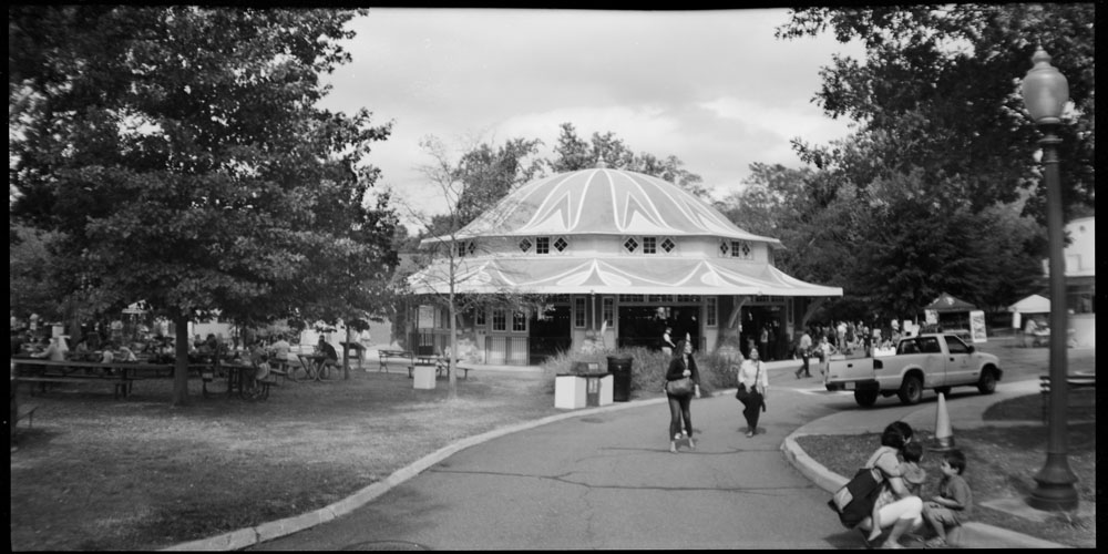 As you’ve seen, I’ve been playing around lately with the panoramic head for my Rolleiflex, trying out some two and three frame panoramas. With each additional frame in the panorama, it gets harder to stitch together and keep aligned, and to match exposure. Not to mention the people who get caught at the periphery of a frame and then move so they’re missing a limb or something in the second frame.