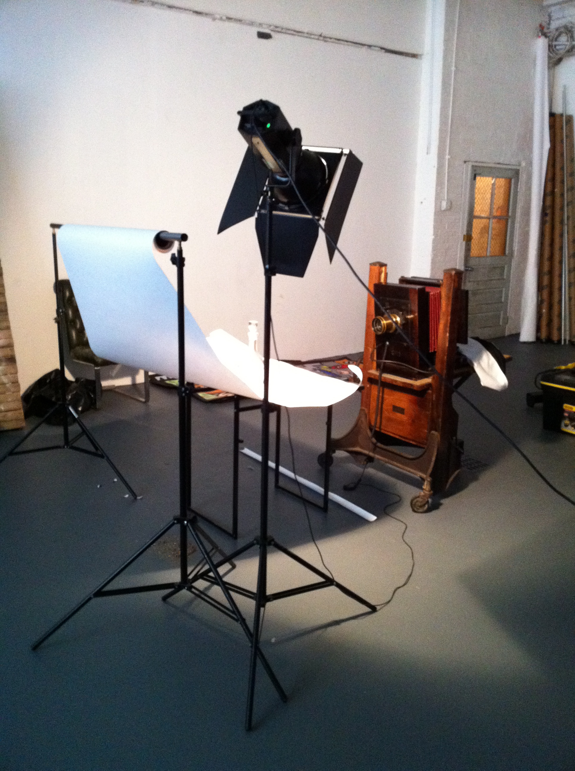 WELL, thus go the best laid plans of mice and men. I get in to the studio Sunday morning, meet the first model, Justin, a 6’4″ ex- football player, and get ready to shoot. On the third test pop of my flash, what happens but one of the capacitors in the power pack goes tits up. And I don’t have my own backup. I call my studio mate who is coming later, and he says just use his, which happens to be compatible with my accessories. So another half-hour goes by digging out his flash unit and setting it up. We do get on with the shoot, and once things get moving, it goes well. Justin is a good model and understands how to create dynamism in his body – I had no trouble setting him in poses that accentuated his physique and worked well with the somewhat exotic format I was shooting in – I was trying out the 5×12 for human figure work, mostly shooting verticals. Working with me, from a models’ perspective, is a real challenge and a physical workout because I need them to hold poses for an extended period of time while I compose each shot. I’m not shooting like a typical fashion photographer who likes to ‘run-n-gun’ and fire off hundreds of photos in an hour. I think with Justin, in about 1 1/2 hours, we took 8. I had him holding a pose for sometimes four or five minutes while I played around under the dark cloth.