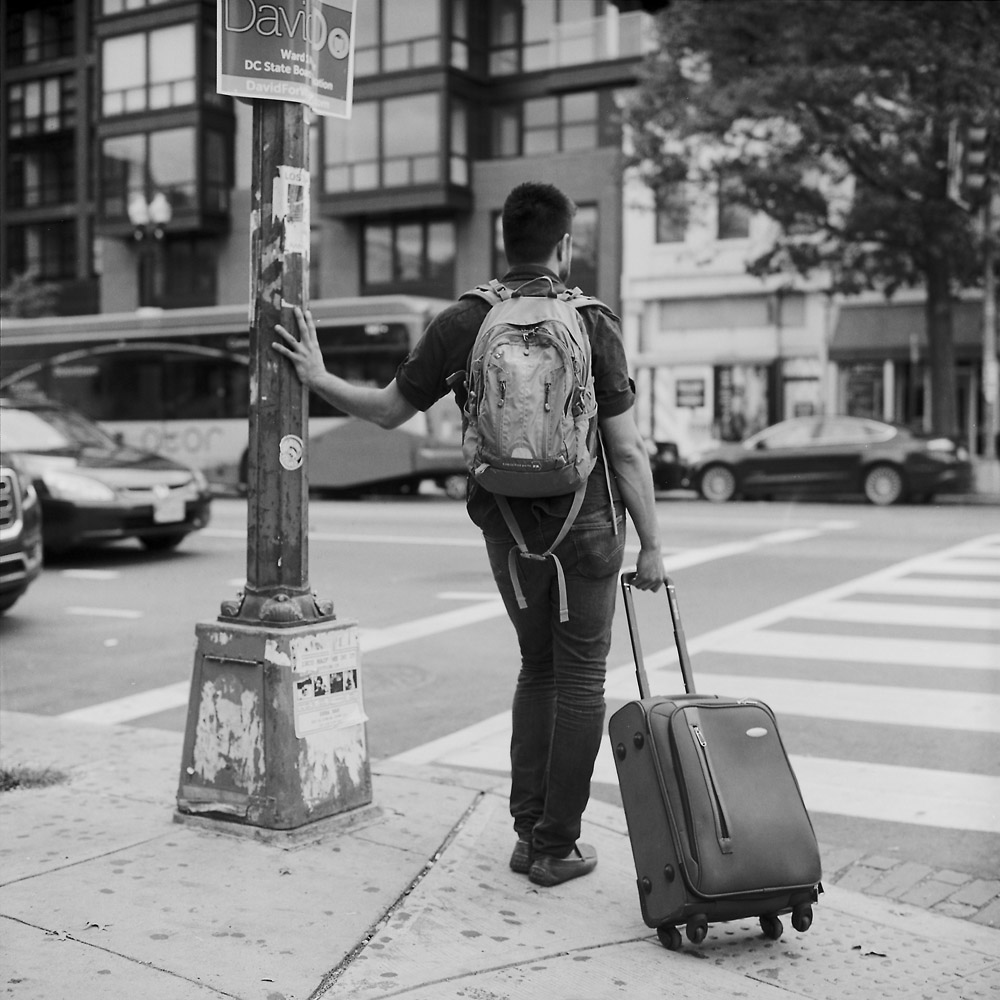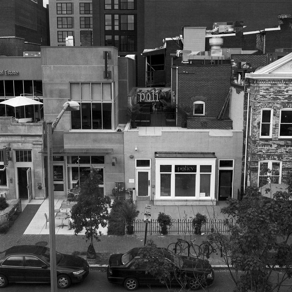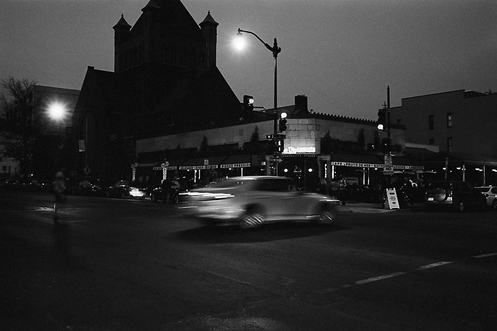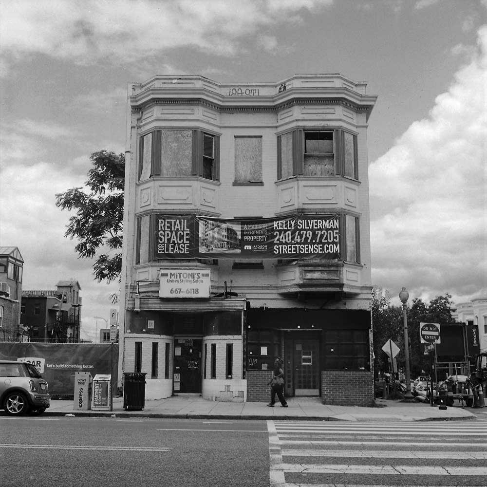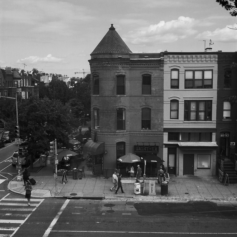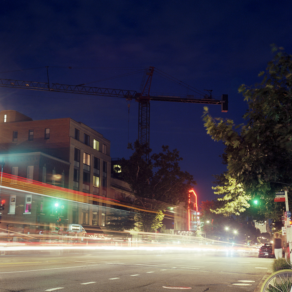 At the intersection of 14th and Q Streets, I pointed my camera south on 14th to try and capture the energy of the neighborhood, through the traffic, the lights, the construction boom represented by the crane, and the people on the sidewalks.