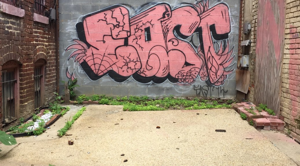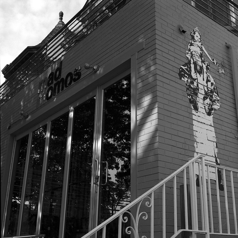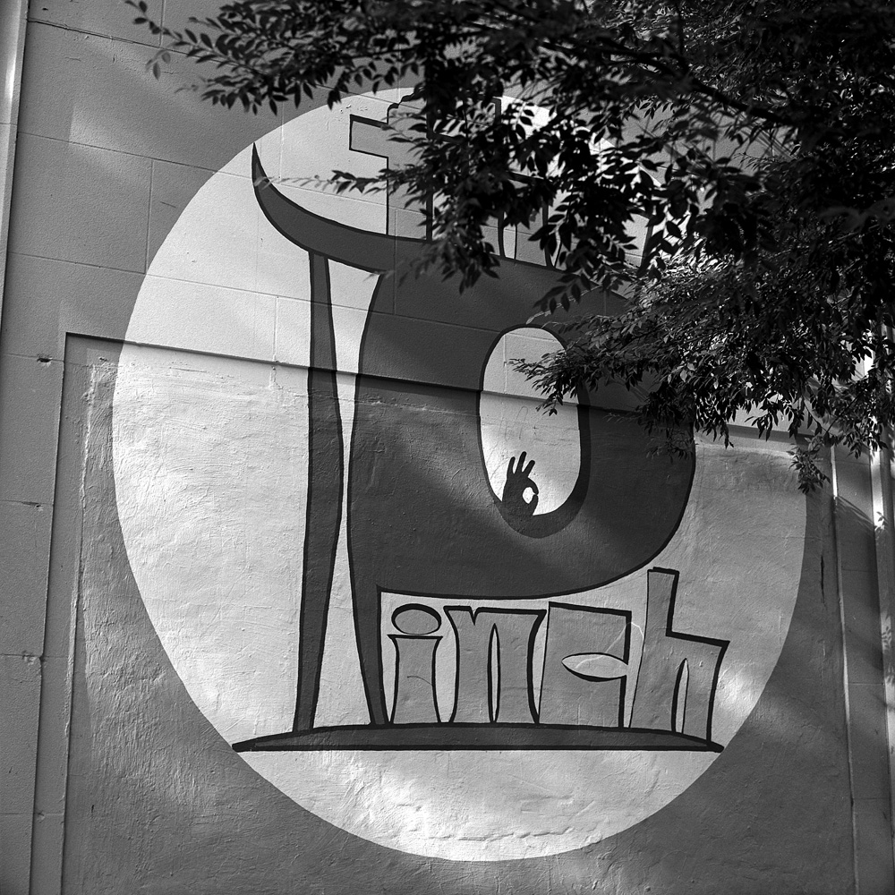 I took those photos of him after we finished a meeting about the exhibit, then went for a 15 minute walkabout in the neighborhood around the restaurant to see what I could find. There’s an old bar/club across the street called “The Pinch” – I so want to photograph the front door because it has cool architectural detailing and some nifty graffiti, but from the looks of the folks hanging out by the front door, I may have to come back and shoot that early in the morning when they’re closed -their patrons may not take too kindly to being photographed.