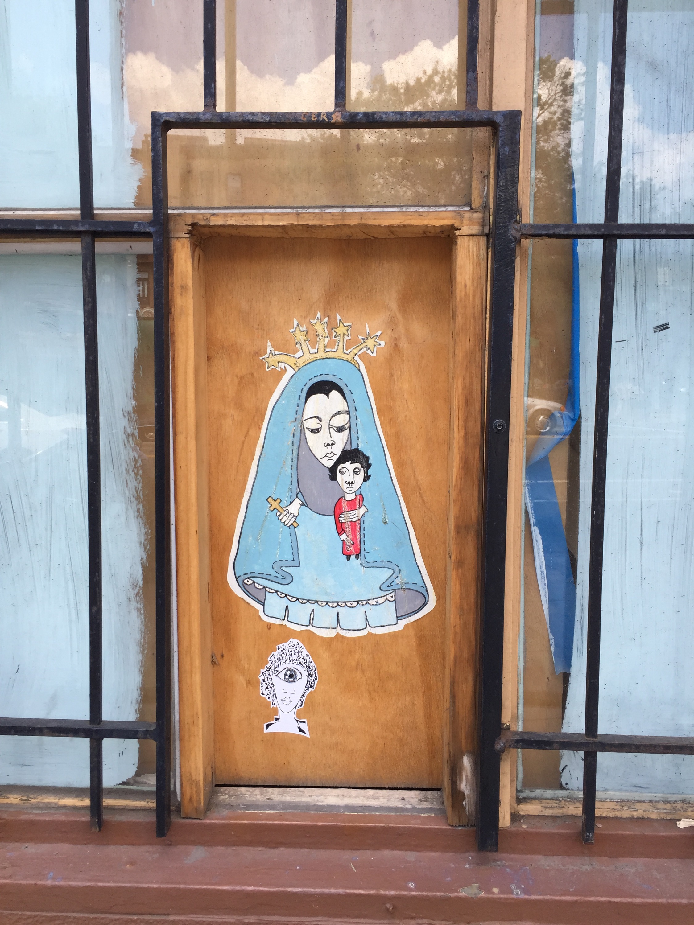 Here is the facade of the building. In case you’re wondering, the paper figures plastered to the wall are Osama Bin Laden giving Honey Boo-Boo a piggy back ride, whilst she’s holding a molotov cocktail. Yeah, the guys have a quirky sense of humor.