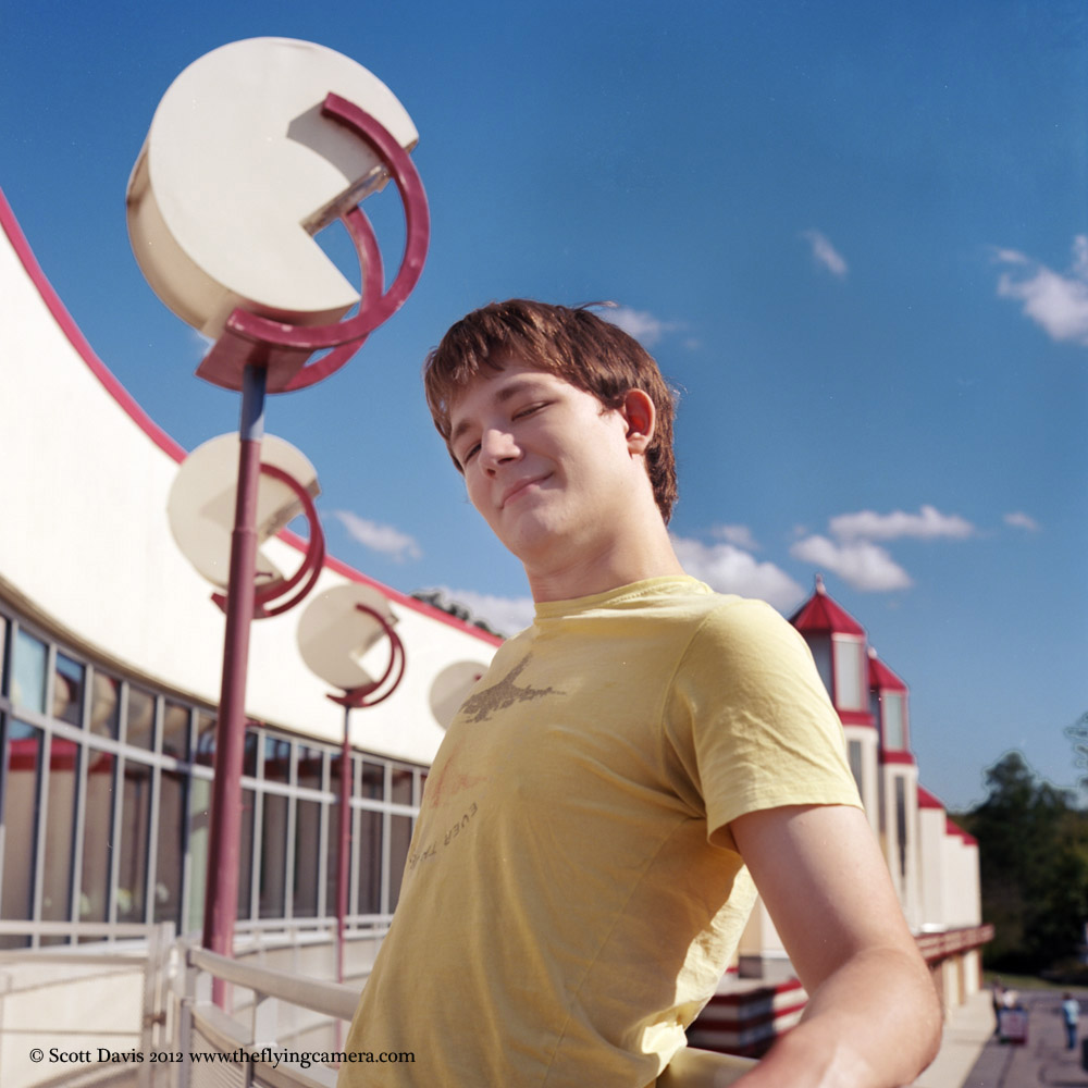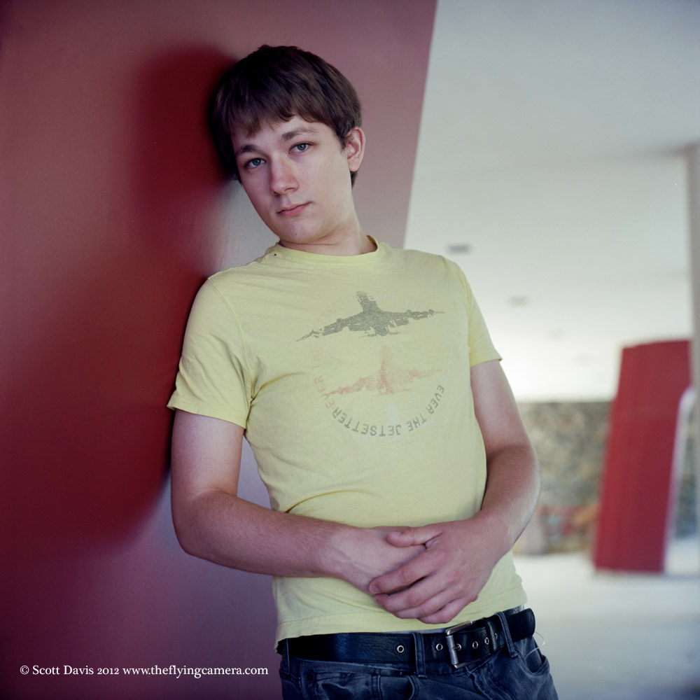 I LOVE Kodak Portra 160nc film after this exercise though – it is VERY easy to scan (with decent software – with craptastic software no film scans easily) and it handles chaotically mixed lighting conditions with ease and aplomb. In the shot I was scanning last night, I had rainbow-colored neon, sodium-vapor streetlights, and fluorescent and incandescent interior lighting, at night, all in the same scene. The only thing I had to color correct for was a minor overall tint caused by sloppy processing at the lab I used at the time. Pretty amazing stuff. Now if they’d only charge less than $350 for a 50 sheet box of the stuff, I’d shoot it more often!