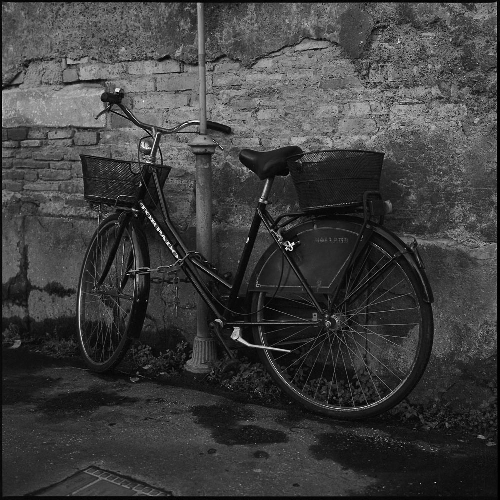 Street parking being somewhat at a premium, and garage parking extremely so, lots of people ride vintage bicycles around the neighborhood. Here’s one that belongs to a neighbor…
