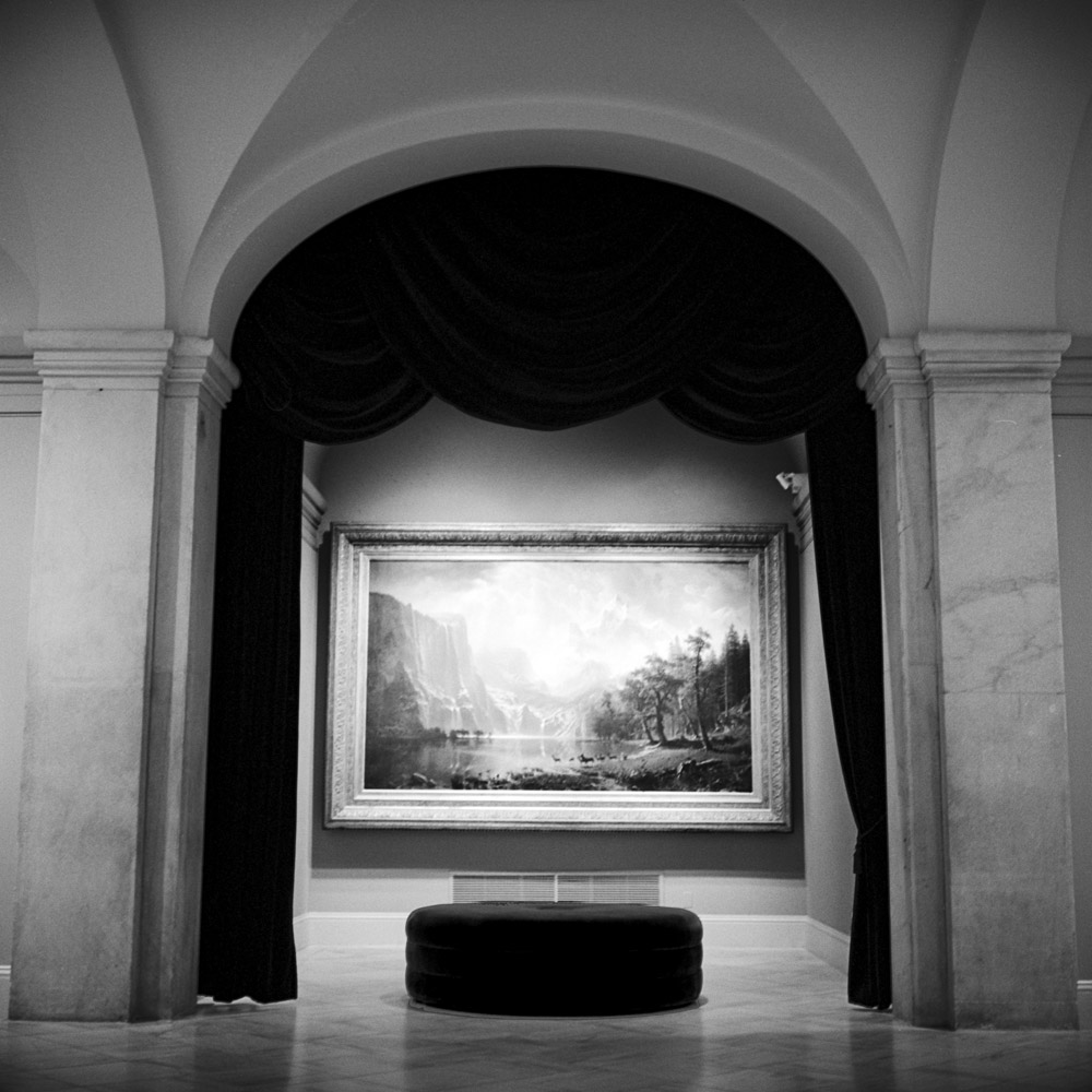 The building was built not only as a warehouse and government office, but from the first it was open to the public as an exhibition space to come see the patent models submitted with patent applications. As such, it makes for a fantastic museum, complete with dramatic display spaces to showcase some sometimes rather large pieces of art. This niche is a perfect example – all it took was some velvet curtains and matching settee.
