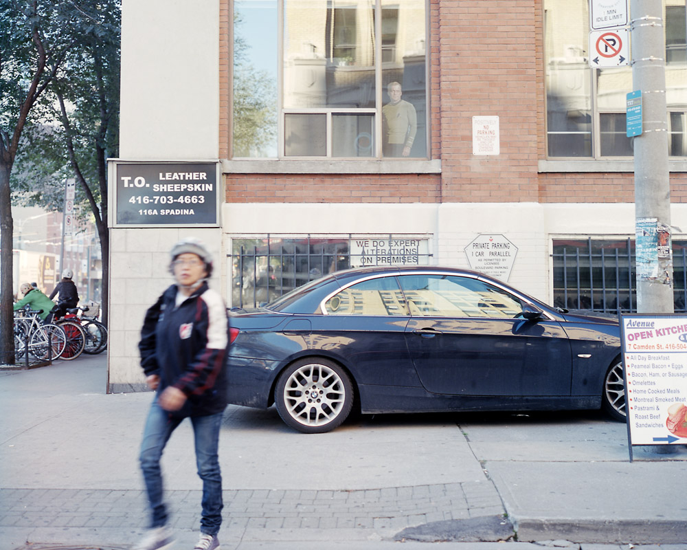 I’ve called this one “Because, William Shatner” because the woman on the street is striking a similar pose to the cardboard cutout of William Shatner in his Captain Kirk uniform in the second story window. Which is there for no apparent reason beyond the fact that William Shatner is Canadian. And the jerk in the BMW seemed to think it was ok to park on the sidewalk underneath the Captain Kirk cutout, despite the no parking sign on the pole. Because, William Shatner… you see where this is going.