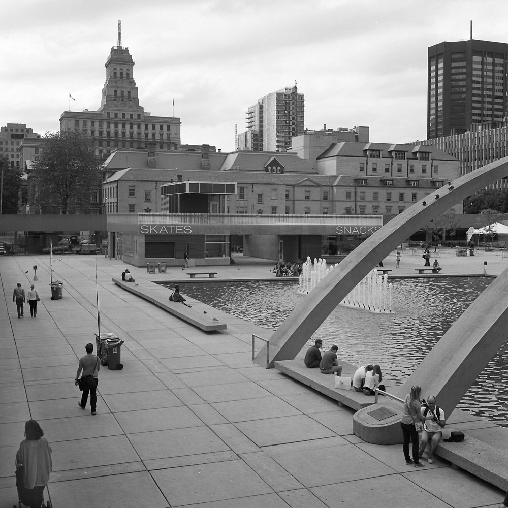 I had shown this before, in my color series about the Distillery District. Here it is again, from a different angle, in black-and-white. The distillation sculpture draws people in and encourages interaction, both under and around it. It also makes a great focal point for the Distillery District space – you can always tell someone “meet me at the sculpture in an hour” and you won’t get lost trying to reconnect.