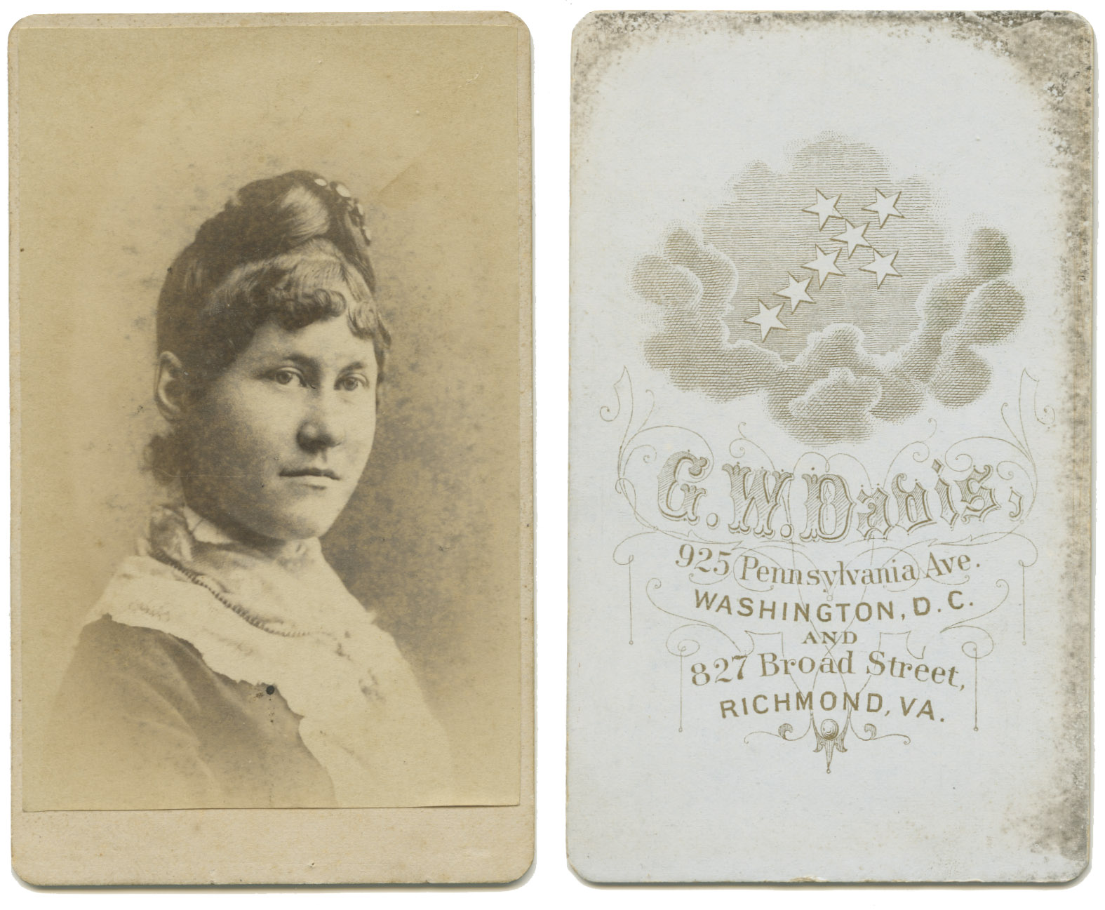 Next up, a more pleasant note, is an anonymous CDV of a little person in policeman’s costume with a gigantic fake mustache escorting a pretty girl in a frilly dress. Nothing more is known about it, as there is nothing on the verso either printed to identify the photographer or handwritten to identify the subjects.