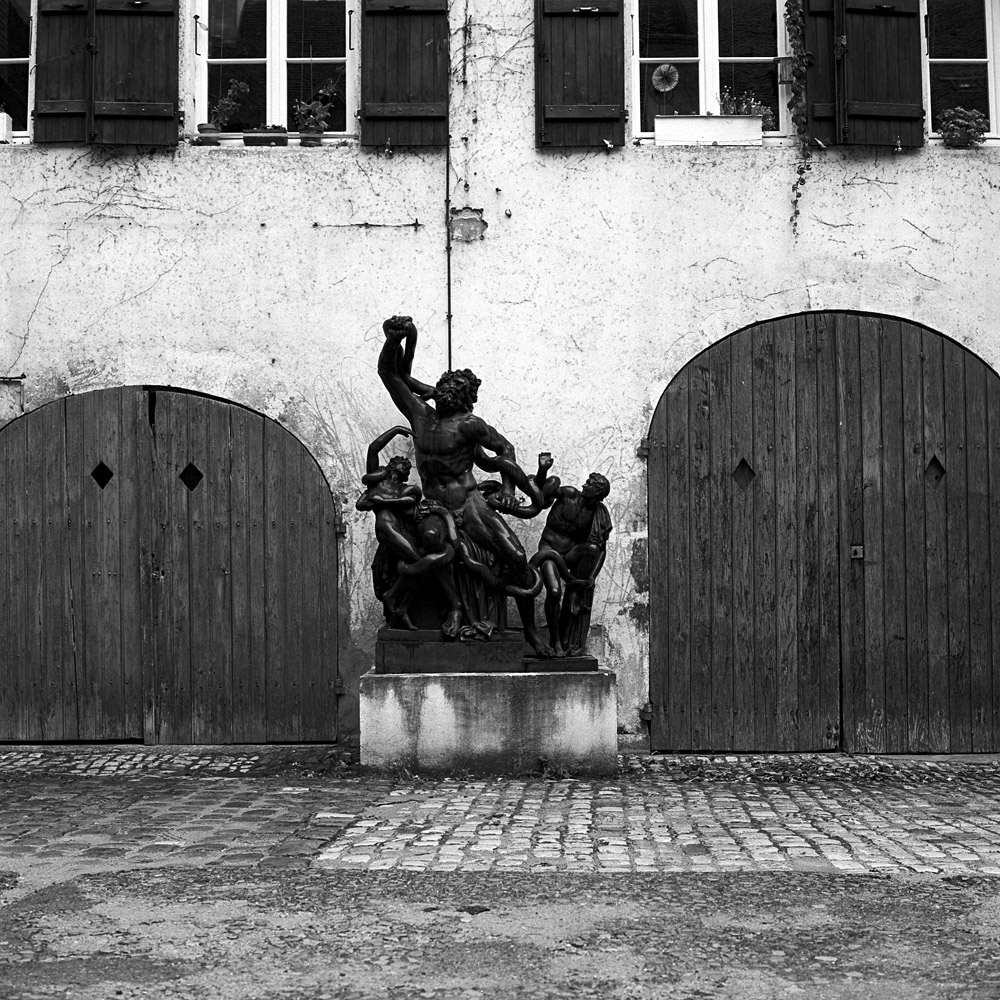 This statue of Laocoon, an ancient Greek mythological figure of a priest who warned the Trojans against admitting the wooden horse into the city, and was punished by he and his sons being devoured by sea serpents (for various reasons by various deities, depending on which version of his story you read). He’s also credited with the phrase “beware of Greeks, bearing gifts”. It’s a bit of odd statuary to find in a random courtyard around the corner from the Niepce Museum in Chalon, but there it is.