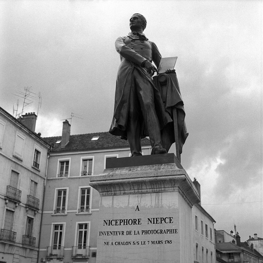 Here are a few more photos from Chalon-sur-Saone. The Niepce monument is the marker of the reason I took the trip in the first place – to visit the birthplace of photography. Nicephore Niepce invented the first successful photographic process, Heliography, in the mid 1820s. One reason most people haven’t heard of it and have never seen a photograph made by this process is that due to the extreme insensitivity to light of the chemicals, a single exposure required HOURS to record an image which ruled it out for photographing any non-static subject, like people, animals, or even plants, and it made photographing buildings difficult as well. In the early 1830s up until his death in 1833, he collaborated with Louis Daguerre, the net result of which was the publication of the Daguerreotype process in 1839.