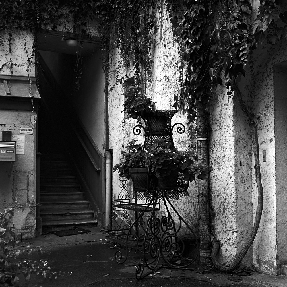 In the same courtyard as the Laocoon statue, there was this iron plant stand in front of the stairs to a second-floor doctor’s office.