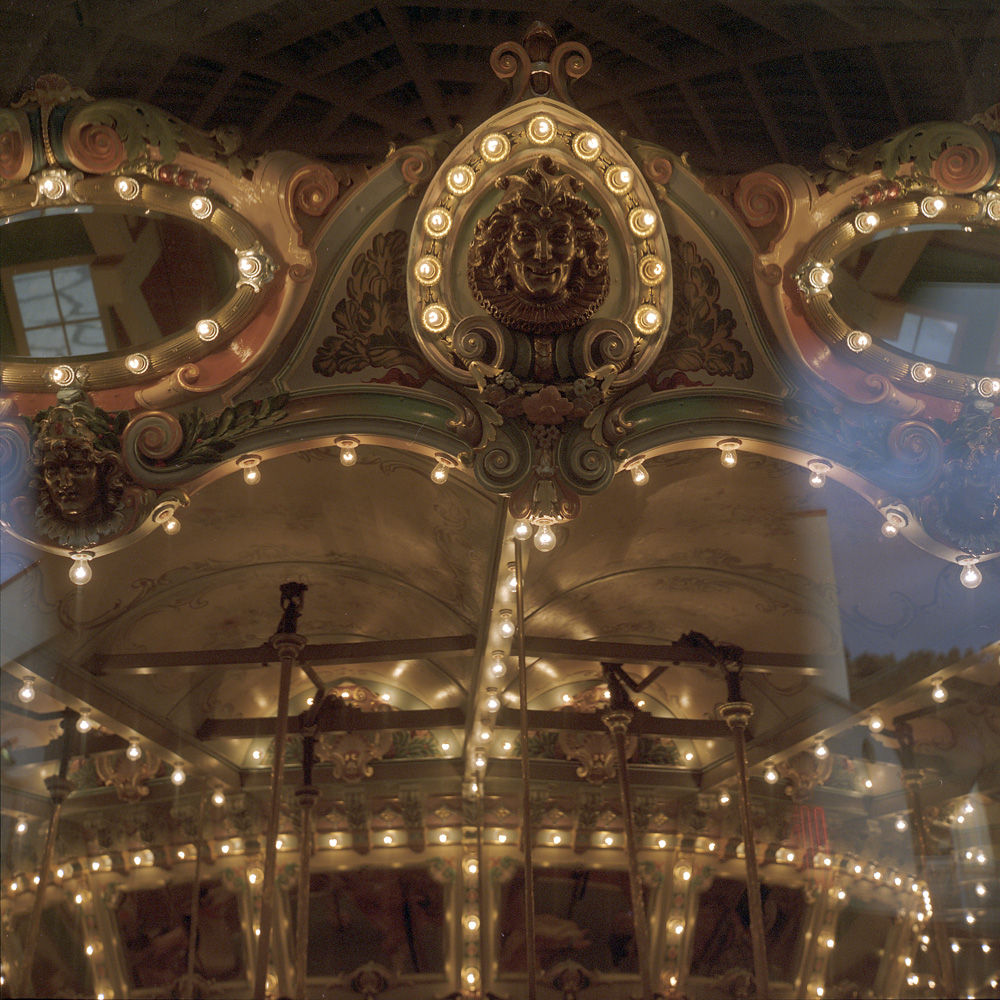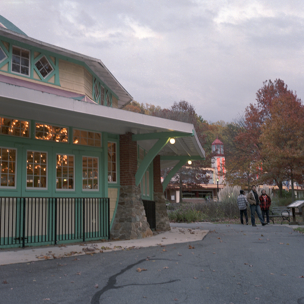 I was walking around Glen Echo Park in the evening after visiting for (I think) an exhibit opening. I had the Rollei with me, and a roll of Kodak Portra 800 loaded. Portra 800 is another one of those “miracle” emulsions, in my estimation. It is expensive (almost $10/roll), but when you need it, it’s there and it works so well at what it does. Yes, it does have more grain and less contrast than Portra 400, not to mention Portra 160, but the difference compared to what you would have seen in older 800 speed films is almost not worth mentioning. It’s a specialty film, and because of the price, not something I’d shoot every day in lieu of a slower film. But using it is not a sacrifice, like other films used to be.