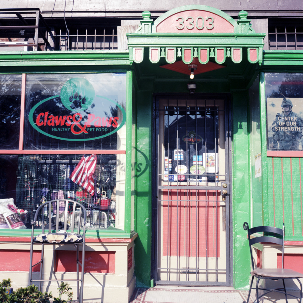 Here are some color shots I took on my neighborhood walk around, last weekend. I noticed a theme of small businesses in the shots I was taking, so I decided to make a grouping out of them for this post. The areas I was photographing are actually very bustling and vibrant, but A: this was on a Sunday afternoon, and B: it was about 93 degrees Farenheit outside, so it looks far more desolate than it actually is, but that allowed me to focus on the appearances of the businesses themselves. My interest in photographing them without people is not to portray an economic state that may or may not be true, but rather the overall feel of small businesses that are in a neighborhood in transition – these are businesses, mostly minority-owned, that have not yet been gentrified in an area experiencing rapid gentrification.