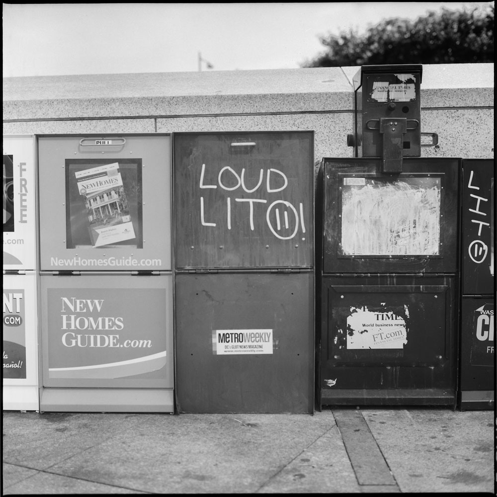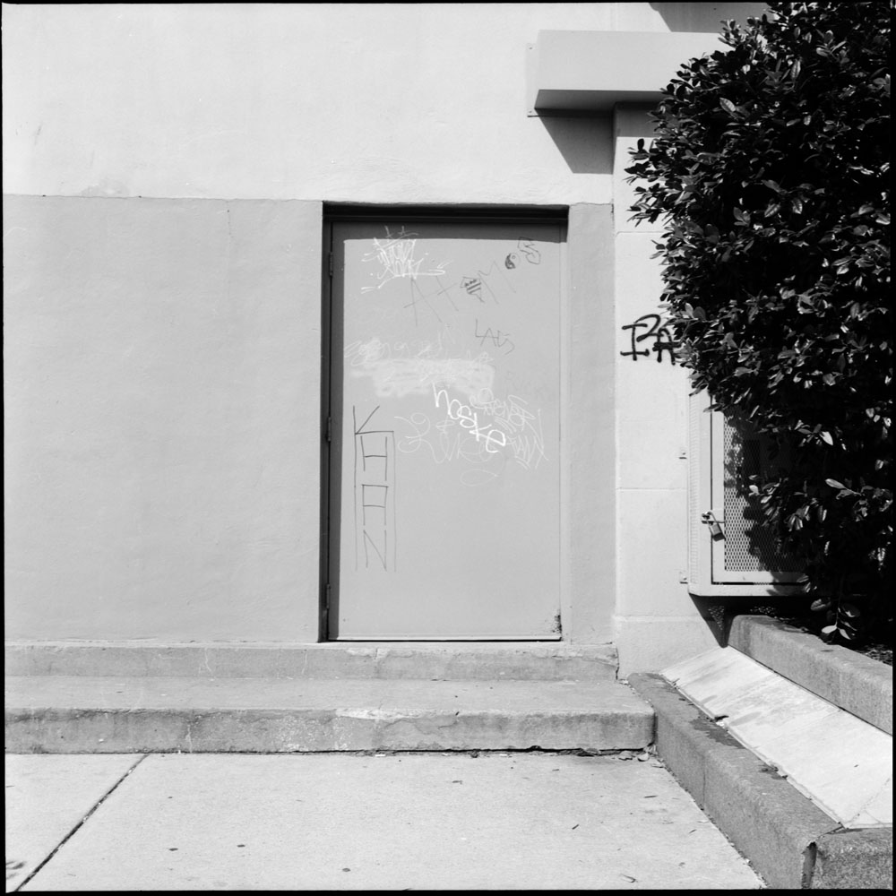 For wont of anything better to do on Sunday afternoon, I went out for a stroll in the 90+ degree heat (what was I thinking!!!) with the Rolleis for company. I wanted to do a little film and development test to see how well my results would come out. I’d say I nailed it based on these shots. The film I was testing is Ilford PanF, a very slow, fine-grained emulsion. The film speed Ilford recommends for this film is ISO 50. Quite a few folks I know recommend giving it a more generous exposure and rating it at EI 12. I shot some before at EI 25 and got good but not knock-your-socks-off results, so I thought I’d try the 12 and see what difference it makes. I took a risk and changed two variables at once – film speed and development technique. Normally I use Rodinal at a 1:50 dilution and develop for 14 minutes, agitating the chemistry for five seconds out of every 30 seconds. This time, I used Pyrocat HD for my developer, gave it twice the normal dilution (I usually use it diluted 1:1:100, but this time I used 1:1:200) for 45 minutes, with 5 seconds of agitation every 15 minutes.