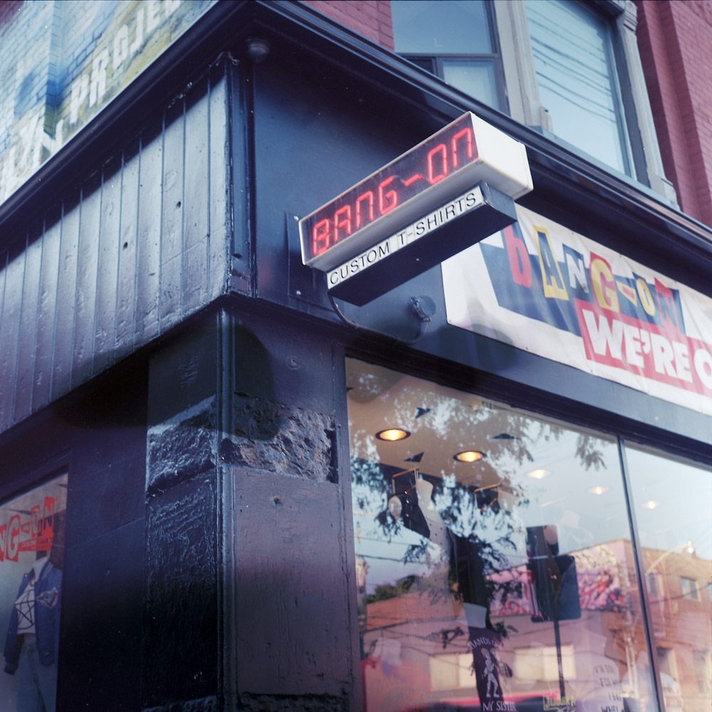 A view of the eateries along King Street. I don’t know what’s going on with the bisected Holstein coming out of the wall of the Kit Kat club, but it certainly is eye-catching.