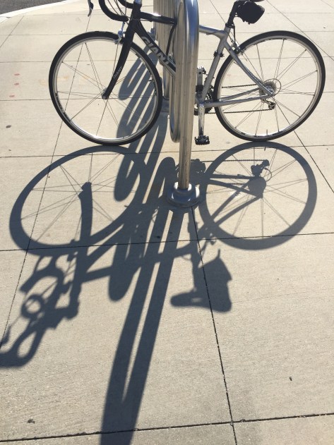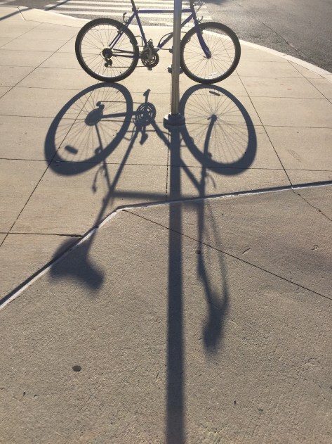 In many ways they are extremely similar: they’re both studies in form and abstraction, with the shadows of the things as the main subject rather than the things themselves (more so of the lamp post than the bike rack, but you get the idea).